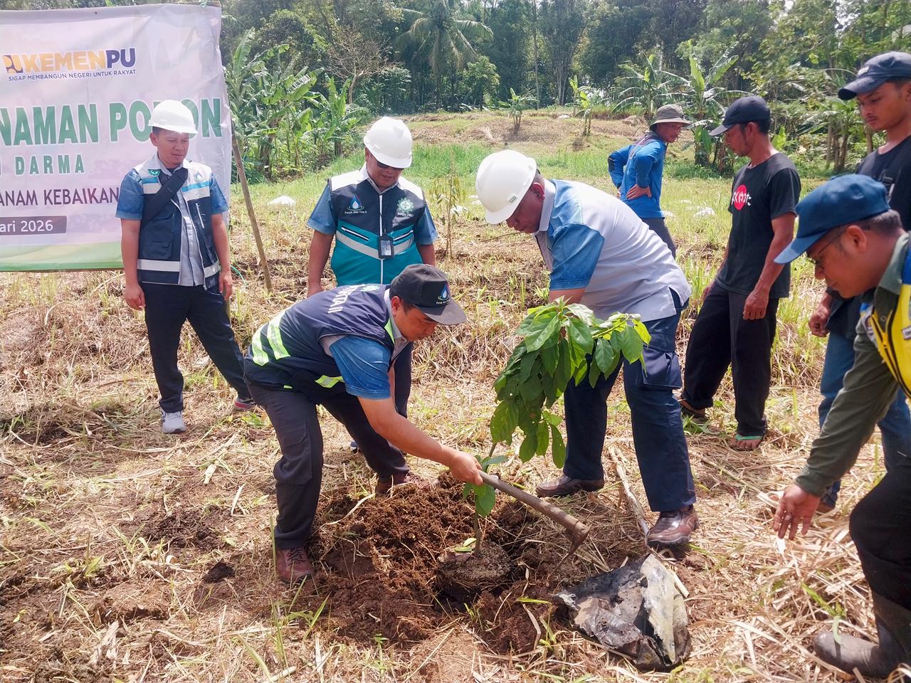 Selasa, 10 Februari 2026, Kabupaten Kuningan, Jawa Barat, sebagai wujud pelaksanaan tugas Pengelolaan Sumber Daya Air di Wilayah Sungai Cimanuk Cisanggarung, Perum Jasa Tirta II Unit Wilayah V bersama BBWS Cimanuk Cisanggarung UPB Darma Kuningan–Malahayu melaksanakan kegiatan penanaman pohon konservasi di area Bendungan Darma dan Bendungan Kuningan, serta pembersihan gulma di area genangan Waduk Darma. Sebanyak 1.440 bibit pohon produktif dan konservatif ditanam di dua titik lokasi, terdiri dari 570 pohon di area Bendungan Darma, 870 pohon di area Bendungan Kuningan. Kegiatan ini turut melibatkan masyarakat yang tergabung dalam Komunitas Peduli Waduk (KPW) sebagai bentuk kolaborasi dalam menjaga kelestarian lingkungan dan keberlanjutan sumber daya air. Hadir dalam kegiatan ini General Manager Unit Wilayah V Cucu Harnanto, Manager Pengelola Prasarana SDA Arif Sugiharto, Manager Teknik, Risiko, K3LH Gema Parwita beserta jajaran Unit Wilayah V, serta Kepala UPB Bendungan Darma Kuningan Dodo Wardoyo beserta jajaran. Langkah ini merupakan komitmen Perum Jasa Tirta II dalam mendukung penghijauan, menjaga ekosistem waduk, serta memastikan keberlanjutan sumber daya air demi kesejahteraan masyarakat.