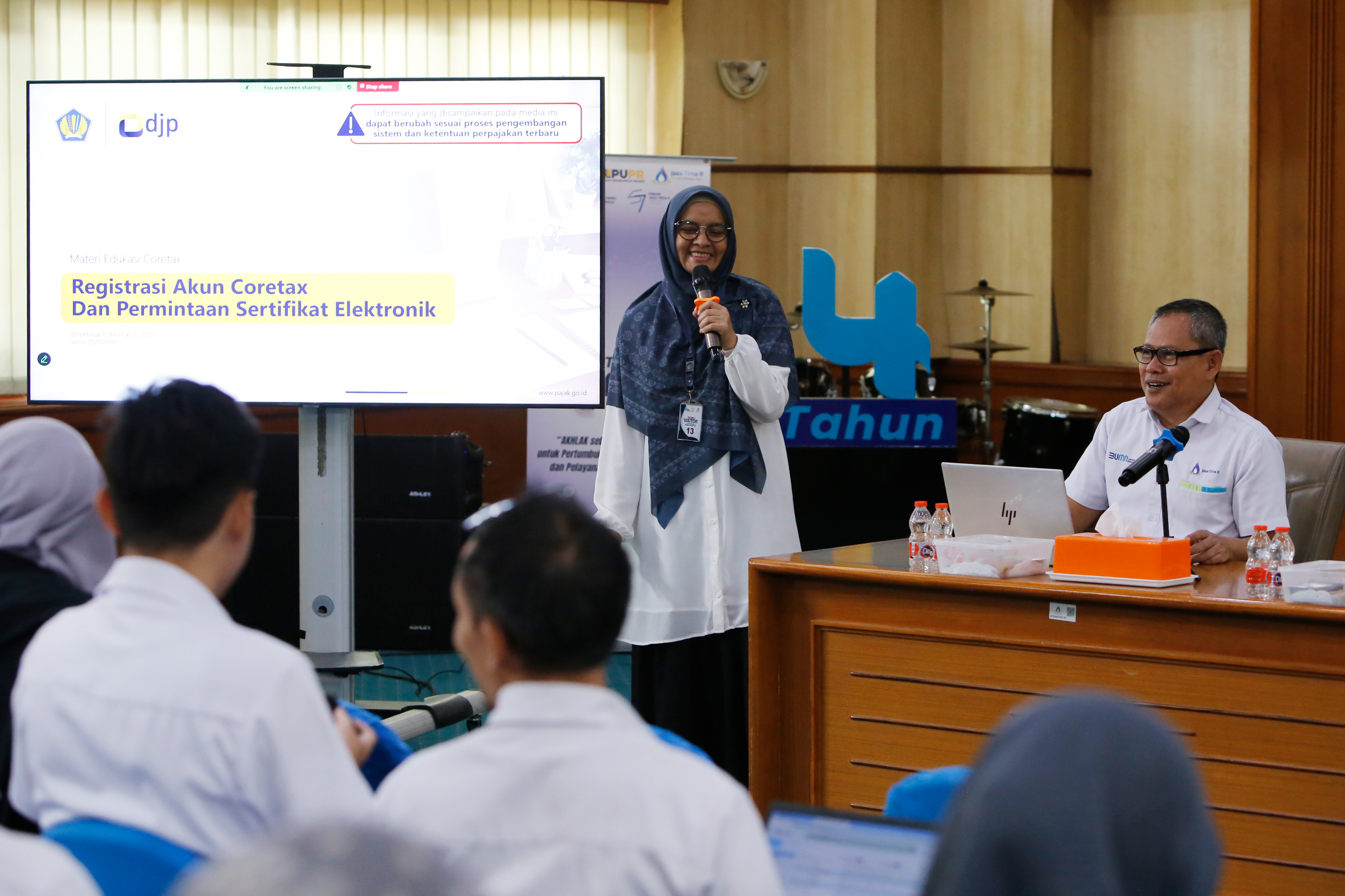 Senin, 19 Januari 2026, Dalam rangka mendukung implementasi Coretax Administration System serta memastikan kepatuhan pelaporan SPT Tahunan Orang Pribadi, Perum Jasa Tirta II menyelenggarakan kegiatan asistensi dan pendampingan bagi karyawan, dengan dukungan langsung dari KPP Pratama Purwakarta serta tim teknis internal. Kegiatan ini bertujuan untuk memastikan seluruh karyawan Mengaktifkan akun Coretax pribadi secara benar dan aman, Memahami proses pelaporan SPT Tahunan Orang Pribadi melalui Coretax. Melalui kegiatan ini, Perum Jasa Tirta II terus berkomitmen memperkuat readiness sistem, meningkatkan kepatuhan perpajakan, serta mendukung tata kelola perusahaan yang akuntabel dan transparan.