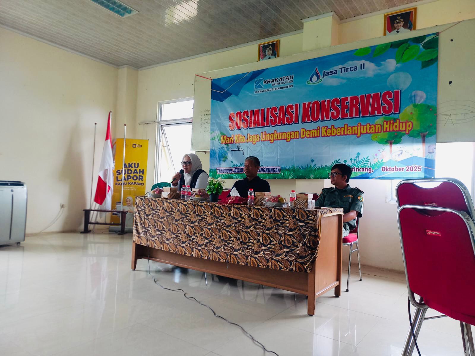 Rabu, 29 Oktober 2025, Perum Jasa Tirta II melaksanakan Kegiatan Sosialisasi Konservasi Air di Tingkat Pendidikan Kecamatan Padarincang, Kabupaten Serang, Banten. Kegiatan yang berlangsung di Aula Kecamatan Padarincang ini diikuti oleh perwakilan siswa dari 5 sekolah setingkat SD, SMP, dan MTs, serta dihadiri oleh Tim TJSL PJT II, TJSL PT KTI, Unit Wilayah VI PJT II, Sekretaris Camat Padarincang, narasumber dari BKSDA Provinsi Jawa Barat, guru pendamping, dan para siswa. Melalui kegiatan ini, Perum Jasa Tirta II berupaya menanamkan kesadaran sejak dini tentang pentingnya menjaga kelestarian air, agar generasi muda memahami nilai air sebagai sumber kehidupan dan mampu menerapkan ilmu yang didapat dalam keseharian, serta menularkannya kepada lingkungan sekitar.