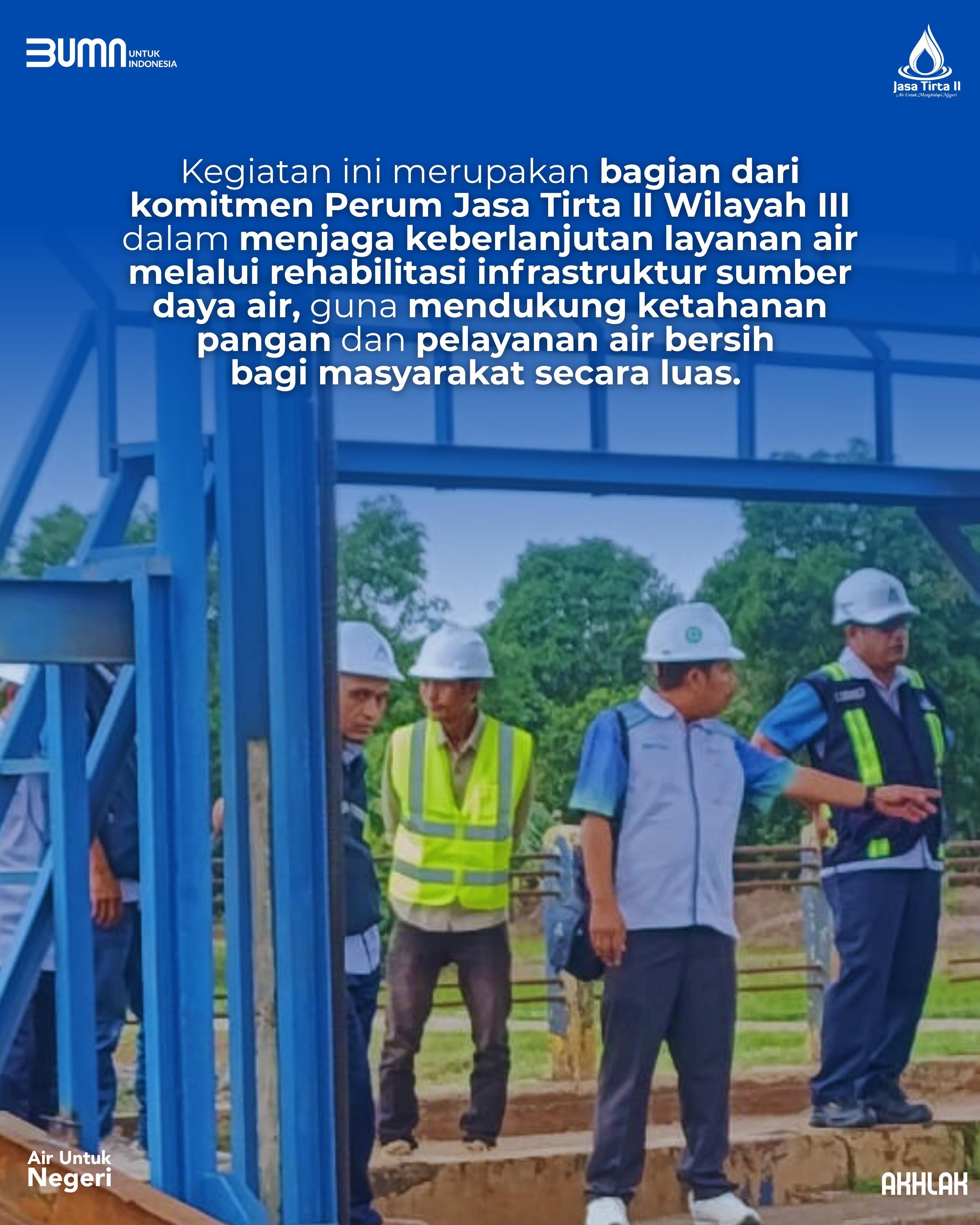 Kegiatan ini merupakan bagian dari komitmen Perum Jasa Tirta II Wilayah III dalam menjaga keberlanjutan layanan air melalui rehabilitasi infrastruktur sumber daya air, guna mendukung ketahanan pangan dan pelayanan air bersih bagi masyarakat secara luas.