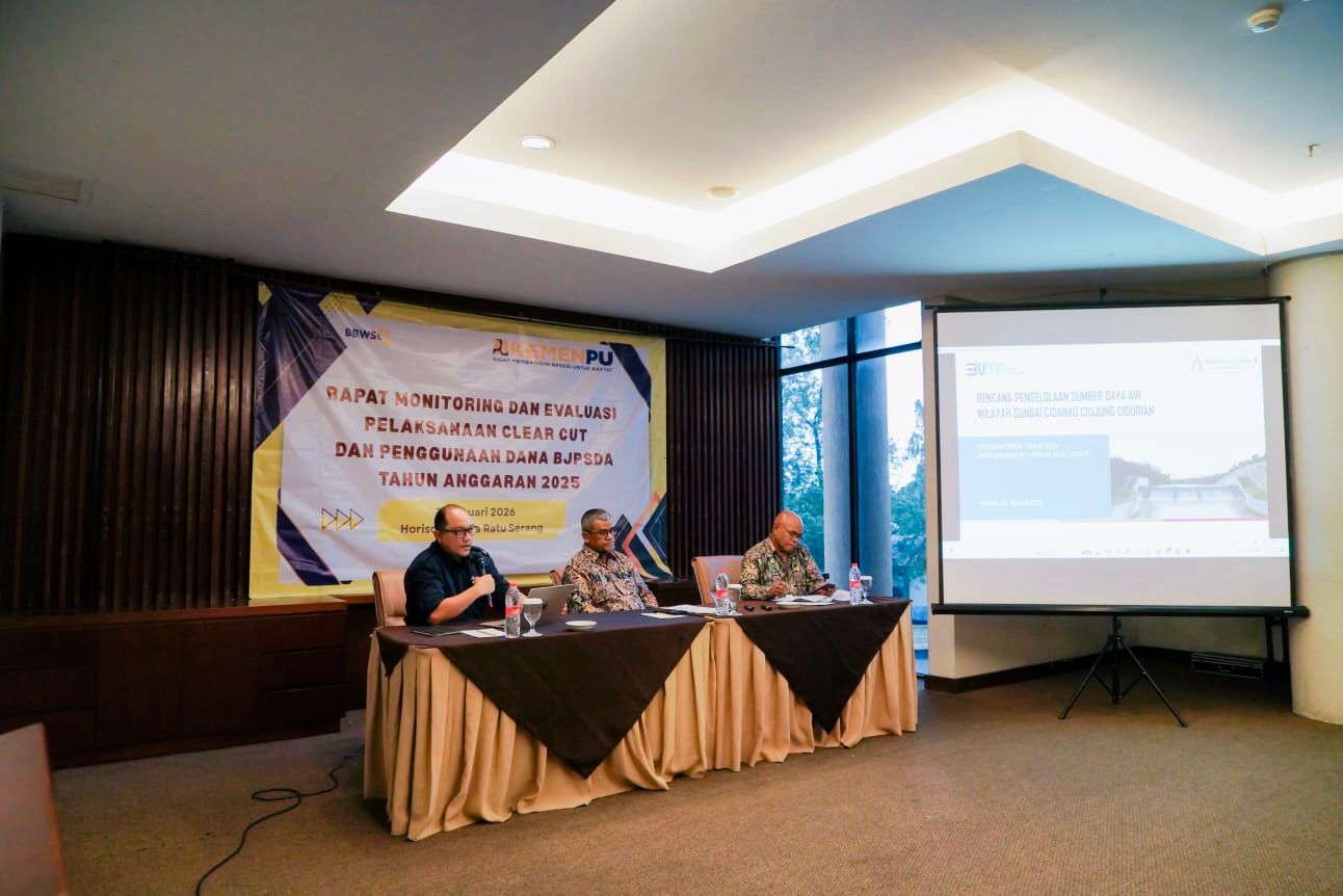 Pada Rabu, 28 Januari 2026, telah dilaksanakan Rapat Monitoring dan Evaluasi Pelaksanaan Clear Cut serta Penggunaan Dana BJPSDA Tahun Anggaran 2025 antara BBWS C3 dan Perum Jasa Tirta II Wilayah VI di Hotel Horison Ultima Ratu, Kota Serang. Kegiatan ini dihadiri oleh General Manager PJT II Wilayah VI Bapak Bima Kawindra beserta jajaran, Kepala Bidang Operasi & Pemeliharaan BBWS C3 Bapak Arlinsyah, serta Kepala Satuan Kerja OPSDA C3 Bapak Leonard Lederik Elwarin. Rapat membahas peningkatan koordinasi pelaksanaan operasi dan pemeliharaan, khususnya dalam pelaporan kegiatan Clear Cut dan pemanfaatan Dana BJPSDA secara efektif dan akuntabel. Beberapa fokus pembahasan meliputi Optimalisasi operasi Bendung Karet Cibanten, Efektivitas dan akuntabilitas penggunaan Dana BJPSDA, Pengaturan dan optimalisasi SDM, Kesiapsiagaan operasi sungai dan potensi bencana, Pengelolaan infrastruktur pendukung operasi & pemeliharaan, Sinkronisasi isu jasa lingkungan hidup (LPJL) melalui koordinasi lintas pihak. Melalui kegiatan ini, PJT II dan BBWS C3 terus memperkuat sinergi dalam menjaga keandalan infrastruktur sumber daya air, mendukung pengelolaan yang transparan, serta memastikan layanan air yang berkelanjutan bagi masyarakat.