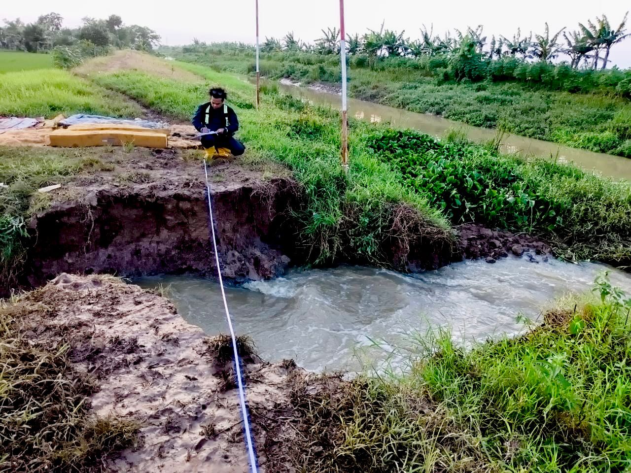 Pada tanggal 24–28 Januari 2026, Perum Jasa Tirta II Unit Wilayah I melalui Seksi Lemahabang melaksanakan perbaikan tanggul pada Saluran Sekunder Kedunggede ruas B.Kg 5a–5 Tanggul Kanan yang berlokasi di Desa Cipayung, Kecamatan Cikarang Timur, Kabupaten Bekasi. Curah hujan yang tinggi menyebabkan terjadinya jebolan tanggul sepanjang ±8 meter, sehingga diperlukan penanganan cepat guna menjaga fungsi dan keandalan saluran irigasi. Saluran ini memiliki area layanan irigasi seluas ±8.148 Ha. Penanganan dilakukan menggunakan mini excavator milik PJT II, disertai pemasangan karung plastik berisi tanah, cerucuk bambu, bronjong yang diisi karung tanah, serta pemasangan terpal sebagai penguat tanggul sementara. Langkah ini merupakan bentuk komitmen Perum Jasa Tirta II dalam menjaga dan merawat prasarana sumber daya air demi mendukung ketahanan pangan serta pelayanan air yang berkelanjutan bagi masyarakat.