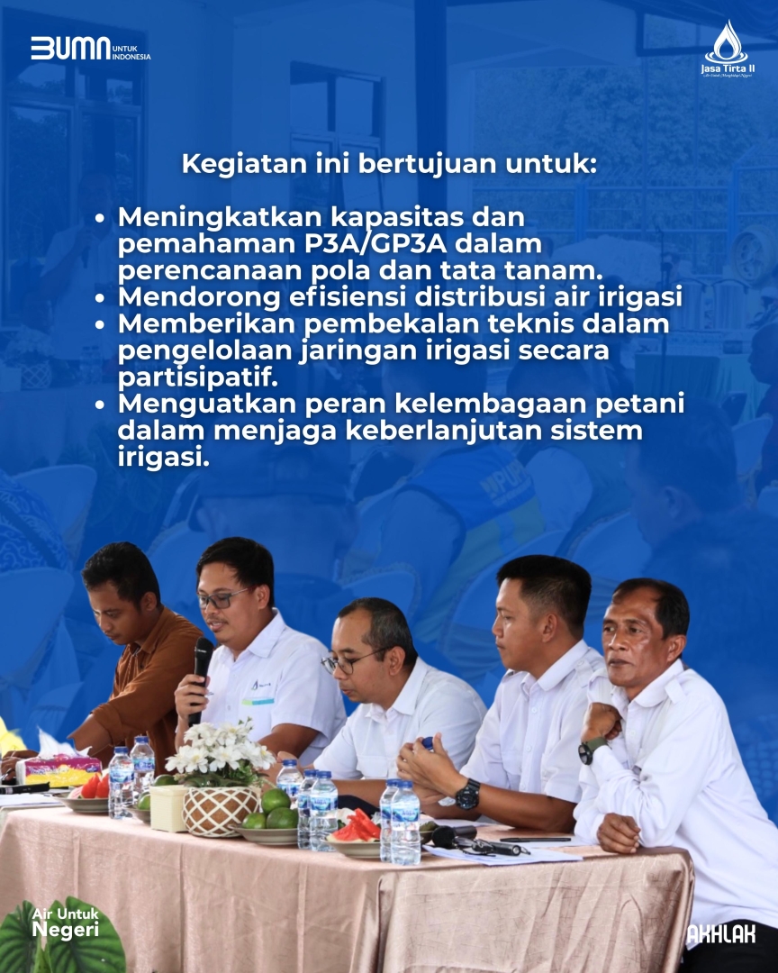 Pada hari Kamis, 15 Mei 2025, Perum Jasa Tirta II Unit Wilayah VII melaksanakan kegiatan Penyuluhan Masyarakat Petani Pemakai Air di Daerah Irigasi (D.I) Sekampung Sistem Tahun 2025 dengan mengusung tema: