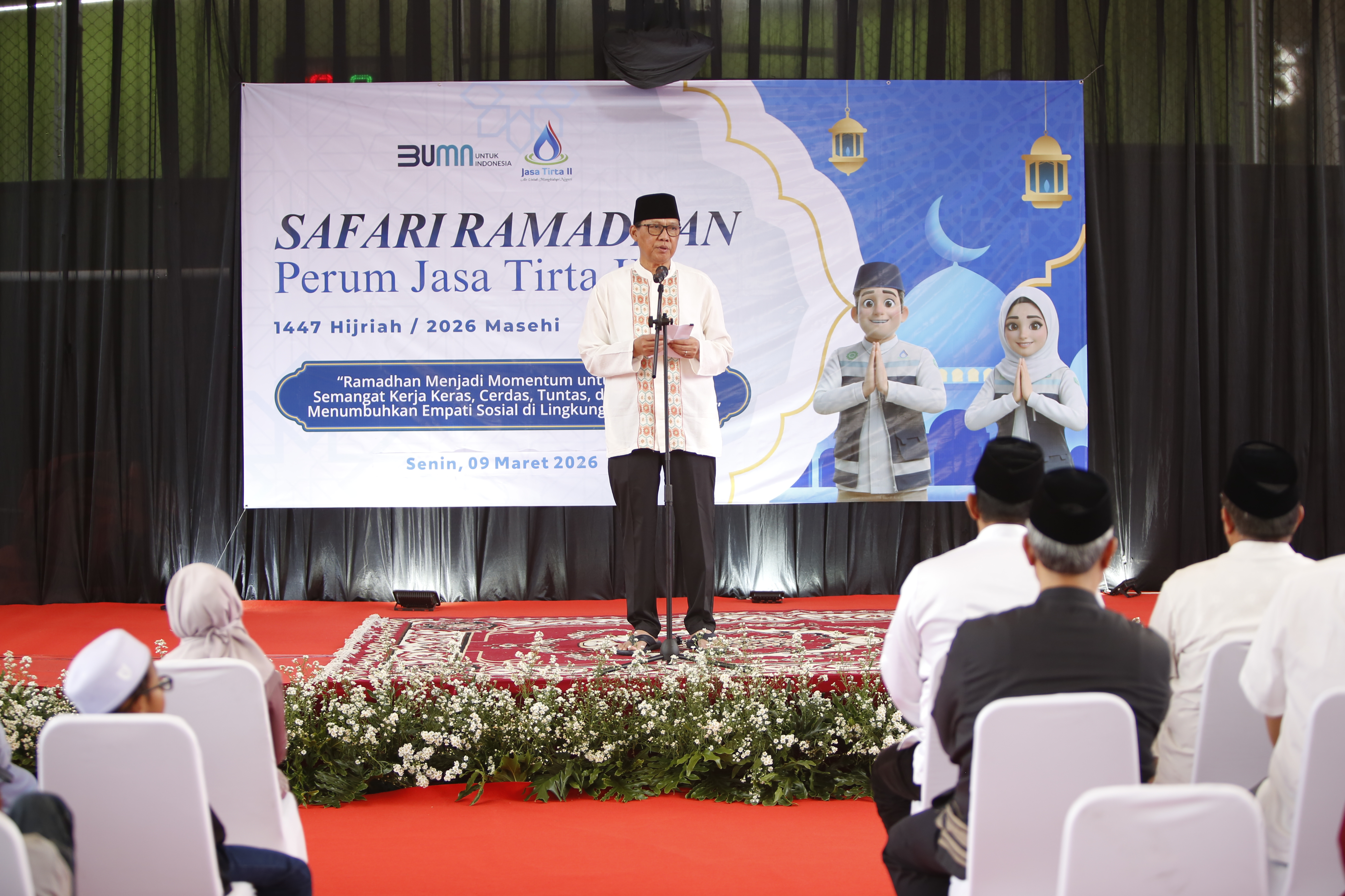 Senin, 9 Maret 2026, keluarga besar Perum Jasa Tirta II melaksanakan Safari Ramadhan di Kantor Unit Wilayah I Bekasi. Acara diawali dengan pembacaan ayat suci Al-Qur’an, sambutan dari Direktur Utama, tausiah bersama ustadz, hingga penyerahan santunan kepada anak yatim. Kegiatan kemudian dilanjutkan dengan buka puasa bersama sebagai momen untuk mempererat silaturahmi dan kebersamaan di lingkungan Perum Jasa Tirta II. Momentum ini menjadi pengingat untuk memperkuat keimanan sekaligus menumbuhkan kepedulian dan kebersamaan di bulan penuh berkah.