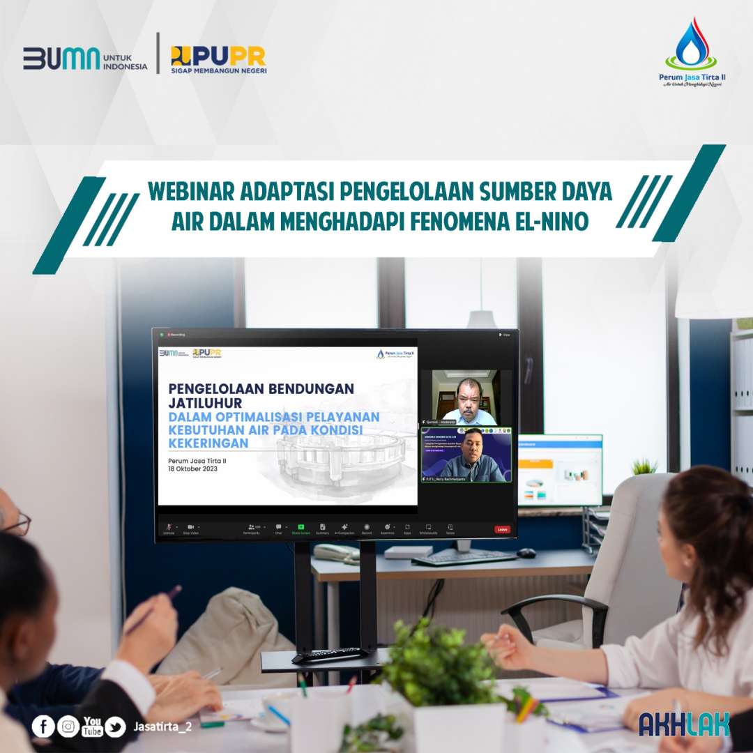Himpunan Ahli Teknik Hidraulik Indonesia (HATHI) Cabang Jawa Barat menyelenggarakan Webinar Sumber Daya Air dengan tema "Adaptasi Pengelolaan Sumber Daya Air dalam Menghadapi Fenomena El-Nino" pada Rabu (18/10/2023).Direktur Operasi dan Pemeliharaan Jasa Tirta II Anton Mardiyono yang diwakili oleh Herry Rachmadyanto selaku Kepala Divisi Operasi dan Pemeliharaan Sumber Daya Air ..