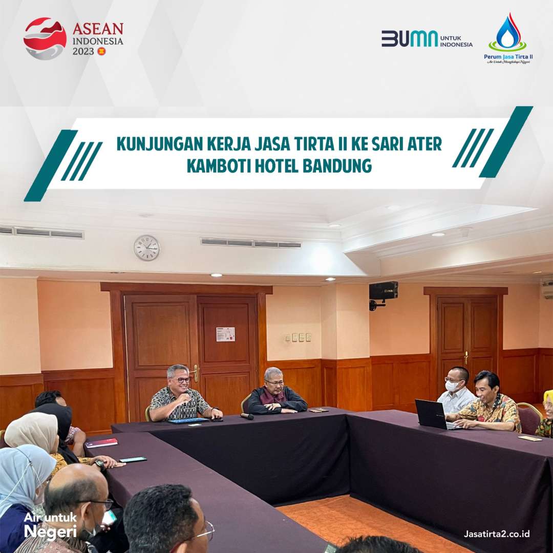 Direktur Pengembangan Usaha Jasa Tirta II Dikdik Permadi Yoffana menerima kunjungan kerja Direktur Utama Perumda Air Minum Tirta Jati Kabupaten Cirebon H. Suharyono, Direktur Teknik Perumda Air Minum Tirta Jati Muhammad Irsyad di Kantor Pusat Jasa Tirta II pada hari Senin, 10 April 2023. Kunjungan Kerja membahas potensi kerjasama pengembangan SPAM ..