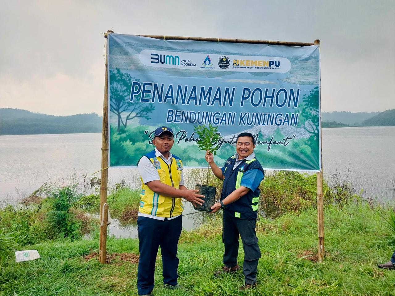 Selasa, 10 Februari 2026, Kabupaten Kuningan, Jawa Barat, sebagai wujud pelaksanaan tugas Pengelolaan Sumber Daya Air di Wilayah Sungai Cimanuk Cisanggarung, Perum Jasa Tirta II Unit Wilayah V bersama BBWS Cimanuk Cisanggarung UPB Darma Kuningan–Malahayu melaksanakan kegiatan penanaman pohon konservasi di area Bendungan Darma dan Bendungan Kuningan, serta pembersihan gulma di area genangan Waduk Darma. Sebanyak 1.440 bibit pohon produktif dan konservatif ditanam di dua titik lokasi, terdiri dari 570 pohon di area Bendungan Darma, 870 pohon di area Bendungan Kuningan. Kegiatan ini turut melibatkan masyarakat yang tergabung dalam Komunitas Peduli Waduk (KPW) sebagai bentuk kolaborasi dalam menjaga kelestarian lingkungan dan keberlanjutan sumber daya air. Hadir dalam kegiatan ini General Manager Unit Wilayah V Cucu Harnanto, Manager Pengelola Prasarana SDA Arif Sugiharto, Manager Teknik, Risiko, K3LH Gema Parwita beserta jajaran Unit Wilayah V, serta Kepala UPB Bendungan Darma Kuningan Dodo Wardoyo beserta jajaran. Langkah ini merupakan komitmen Perum Jasa Tirta II dalam mendukung penghijauan, menjaga ekosistem waduk, serta memastikan keberlanjutan sumber daya air demi kesejahteraan masyarakat.
