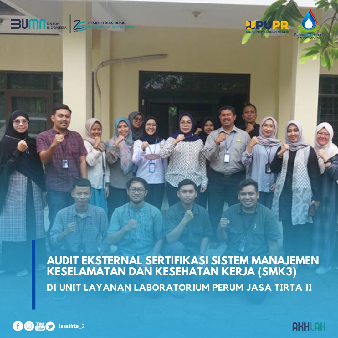 Perum Jasa Tirta II berhasil melaksanakan Audit Eksternal Sertifikasi Sistem Manajemen Keselamatan dan Kesehatan Kerja (SMK3) yang dilakukan oleh PT. Alkon Indo Sertifikasi di lingkungan Unit Layanan Laboratorium pada Jumat, (1/12/2023).