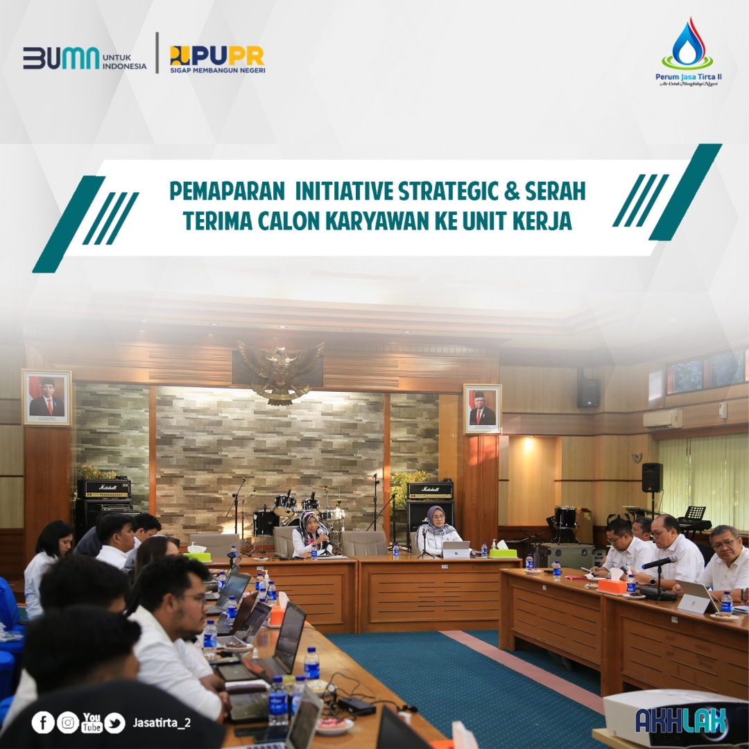 Pemaparan dilakukan pada tanggal Senin, 09 Oktober 2023 di Ruang Rapat Graha Citarum, Kantor Pusat Jasa Tirta II, Kecamatan Jatiluhur Kabupaten Purwakarta. Kegiatan ini dihadiri oleh Direktur Keuangan, SDM dan Manajemen Risiko Indriani Widiastuti Jasa Tirta II sekaligus menyerahkan calon karyawan kepada Kepala Unit Kerja penempatan dengan harapan dapat membimbing calon karyawan agar melaksanakan kinerja dengan baik dan memegang teguh nilai inti AKHLAK. 14 calon karyawan Jasa Tirta II merupakan hasil rekrutmen kolaborasi dengan Forum Human Capital Indonesia (FHCI).