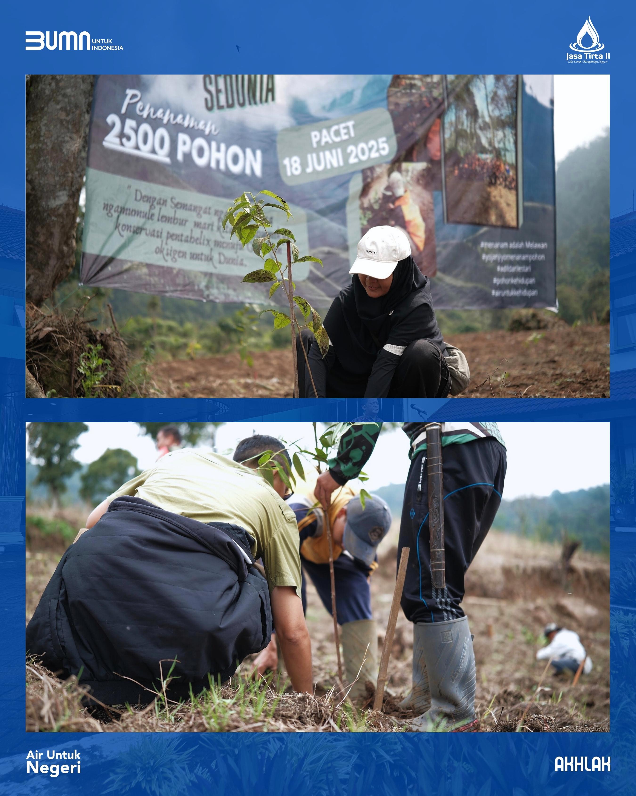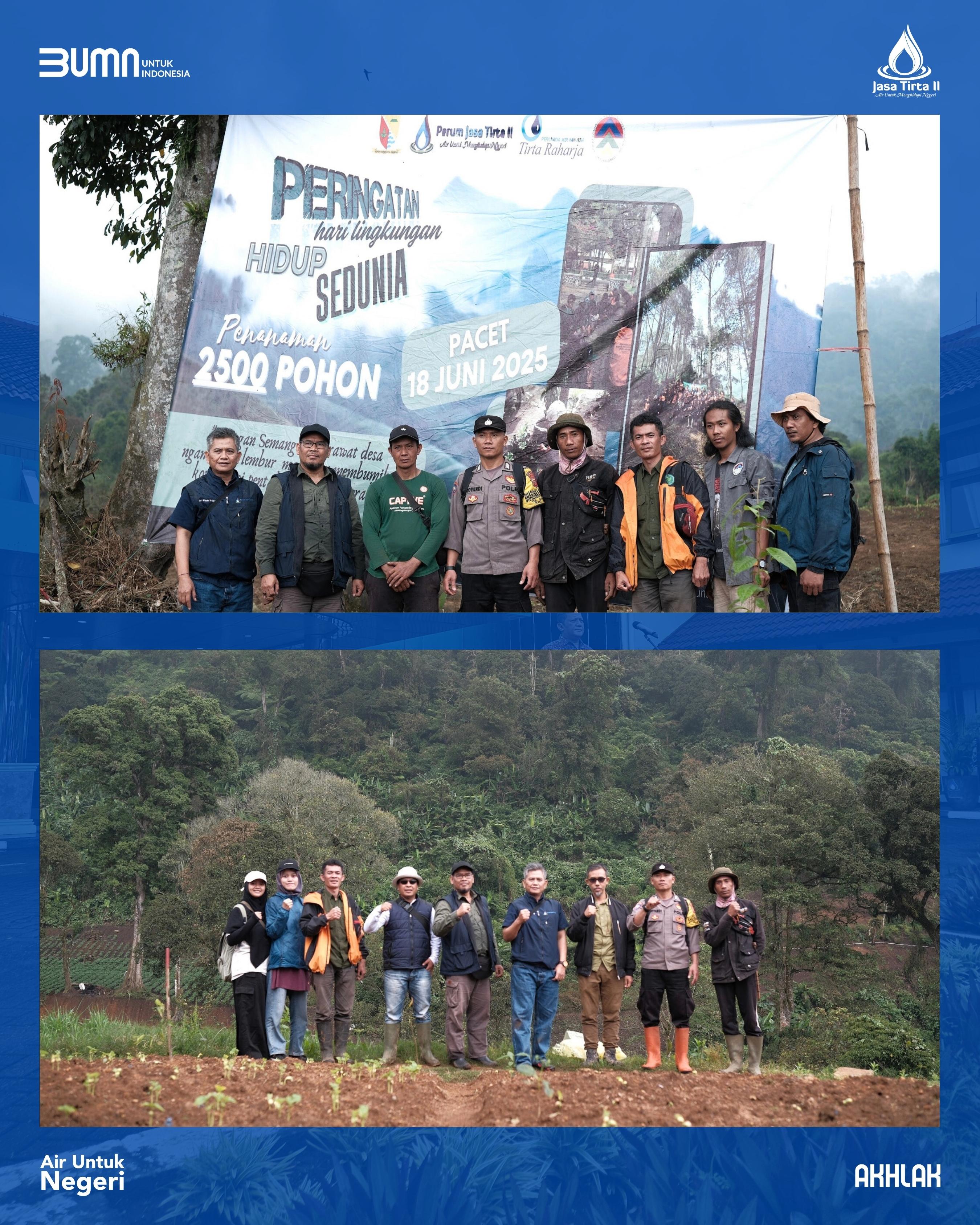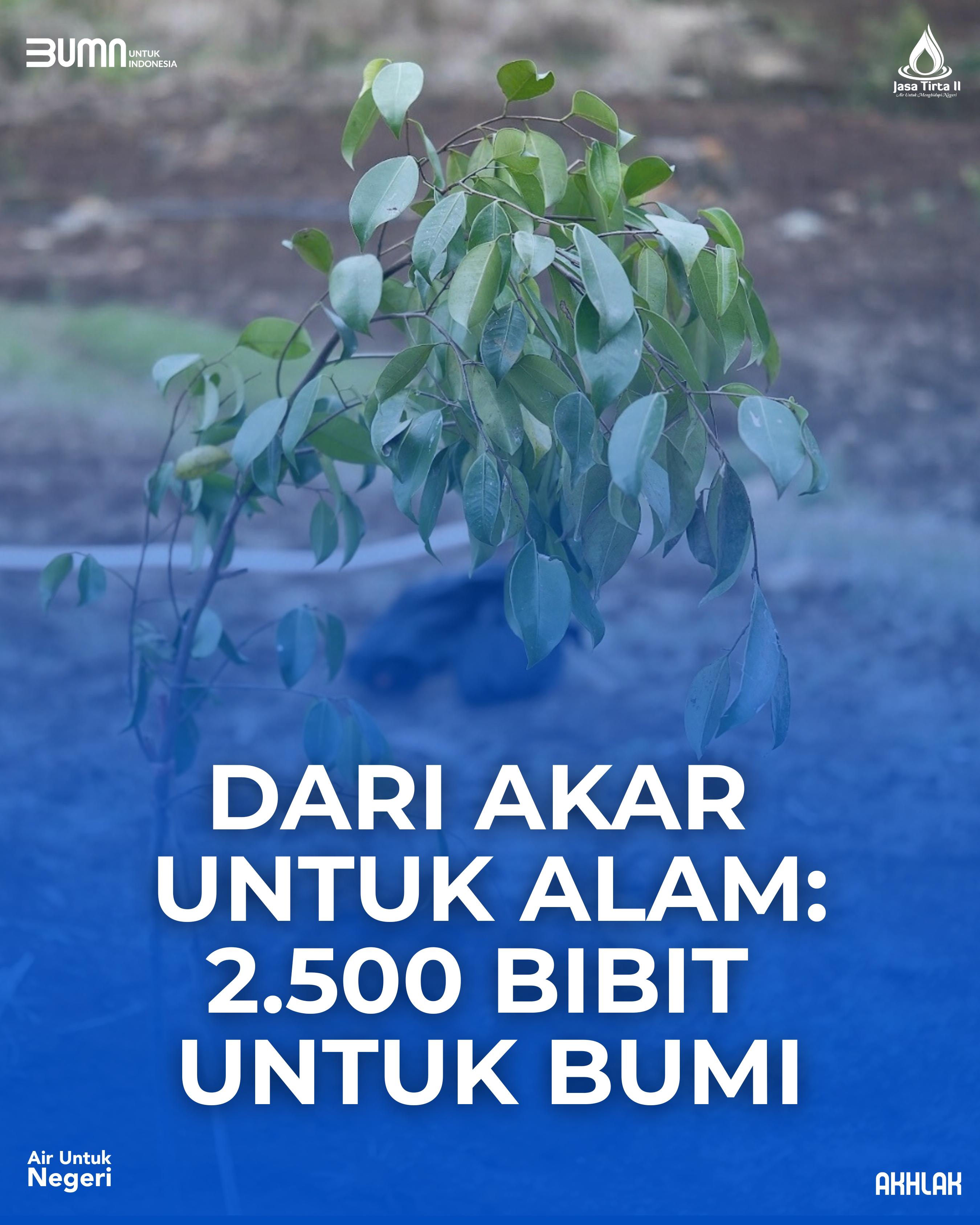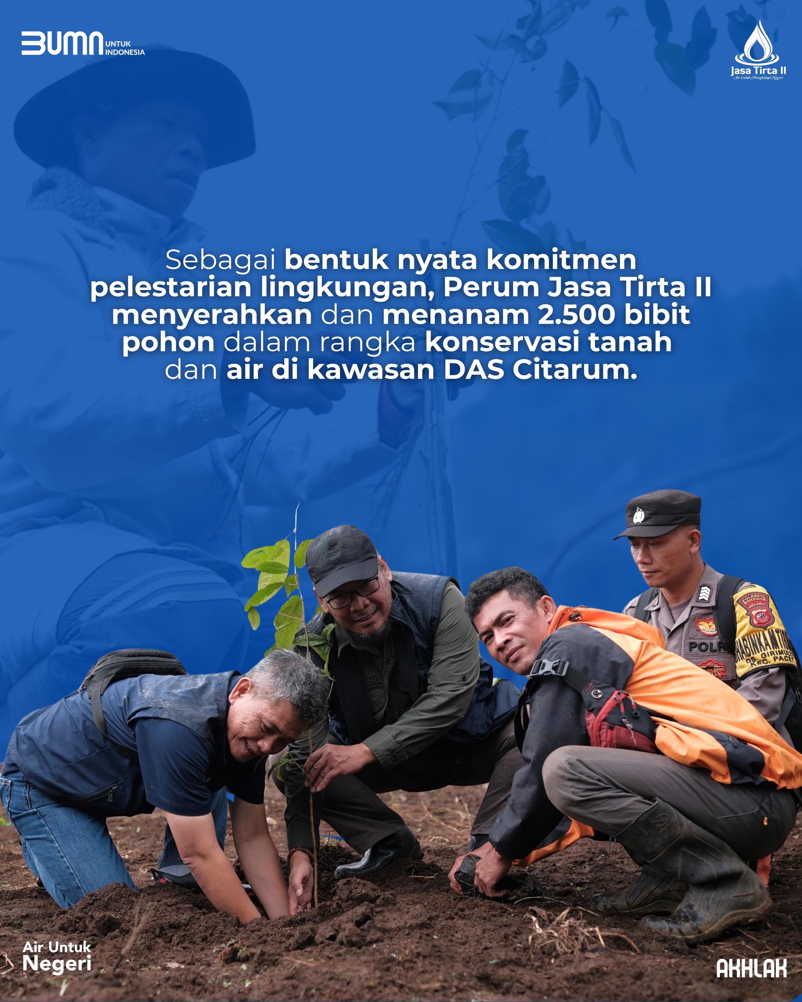 Sebagai bentuk nyata komitmen pelestarian lingkungan, Perum Jasa Tirta II menyerahkan dan menanam 2.500 bibit pohon dalam rangka konservasi tanah dan air di kawasan DAS Citarum.