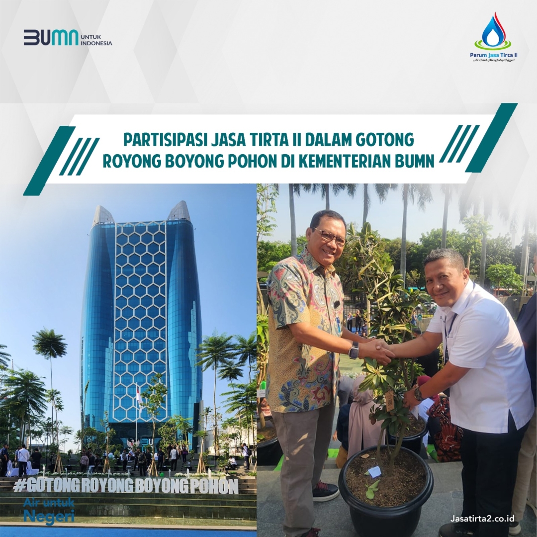 Direktur Utama Jasa Tirta II Imam Santoso bersama Menteri BUMN dan Para Direktur Utama BUMN serta perwakilan 1 (satu) karyawan mendukung perbaikan kualitas udara dengan melakukan penanaman pohon bertajuk Gotong Royong Boyong Pohon yang diinisiasi Kementerian BUMN.