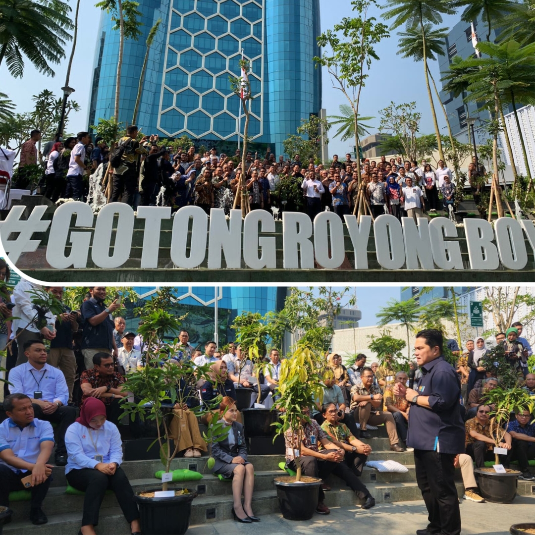 Kegiatan Gotong Royong Boyong Pohon dilakukan di Taman Lobby Utara Gedung Kementerian BUMN pada Rabu, 27 September 2023. Kegiatan penghijauan ini dilaksanakan sebagaimana arahan Bapak Presiden Republik Indonesia untuk menghijaukan wilayah Daerah Khusus Ibukota Jakarta dalam rangka memperbaiki kualitas udara.