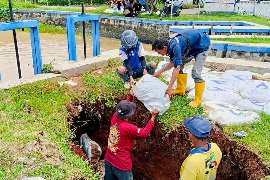 Sabtu, 13 Desember 2025, Unit Wilayah III Perum Jasa Tirta II melalui Gerak Cepat (GERCEP) melaksanakan penanggulangan tanggul Saluran Sekunder (SS) Kadanghaur yang mengalami amblas pada Ruas B.Khr2 kanan Saluran Pembuang Bawah, Kabupaten Indramayu. Kegiatan ini dilakukan sebagai langkah cepat untuk mencegah meluasnya kerusakan tanggul, menjaga keandalan jaringan irigasi, memastikan aliran air tetap terkendali dan berfungsi optimal bagi daerah layanan di sekitarnya. Langkah responsif ini merupakan wujud komitmen PJT II dalam menjaga infrastruktur Sumber Daya Air, sekaligus melindungi masyarakat dari potensi dampak lanjutan, khususnya di tengah intensitas musim hujan yang meningkat. Bersama, kita jaga saluran air tetap aman dan berfungsi demi keberlanjutan lingkungan dan ketahanan pangan.