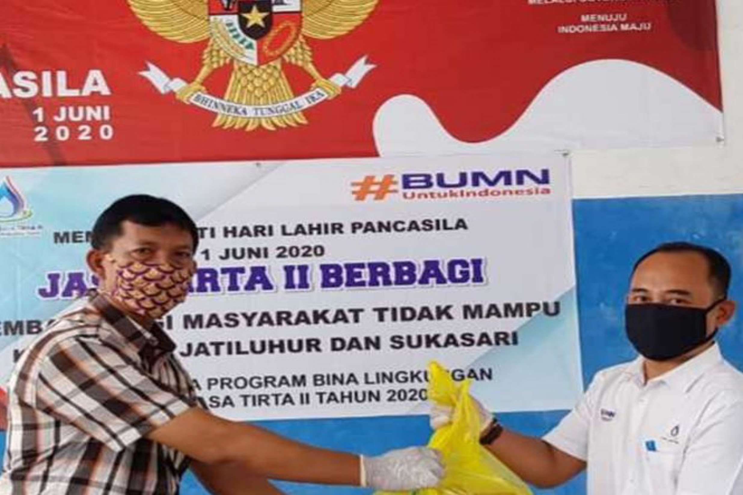 PURWAKARTA - Memperingati Hari Lahir Pancasila 1 Juni 2020, Jasa Tirta II berbagi sembako sebanyak 4000 paket sembako ke masyarakat terdampak pandemi COVID-19 di Kecamatan Jatiluhur dan Sukasari.