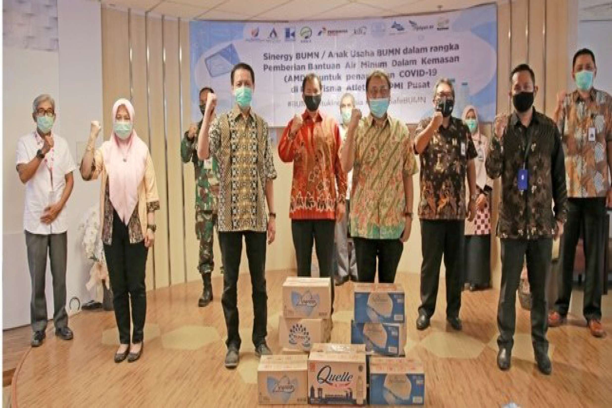 JAKARTA - Jasa Tirta II bersama 11 BUMN/Anak BUMN Produsen Air Minum Dalam Kemasan (AMDK) memberikan bantuan AMDK kepada Rumah Sakit Darurat COVID-19 di Jakarta pada Jumat, 26 Juni 2020.