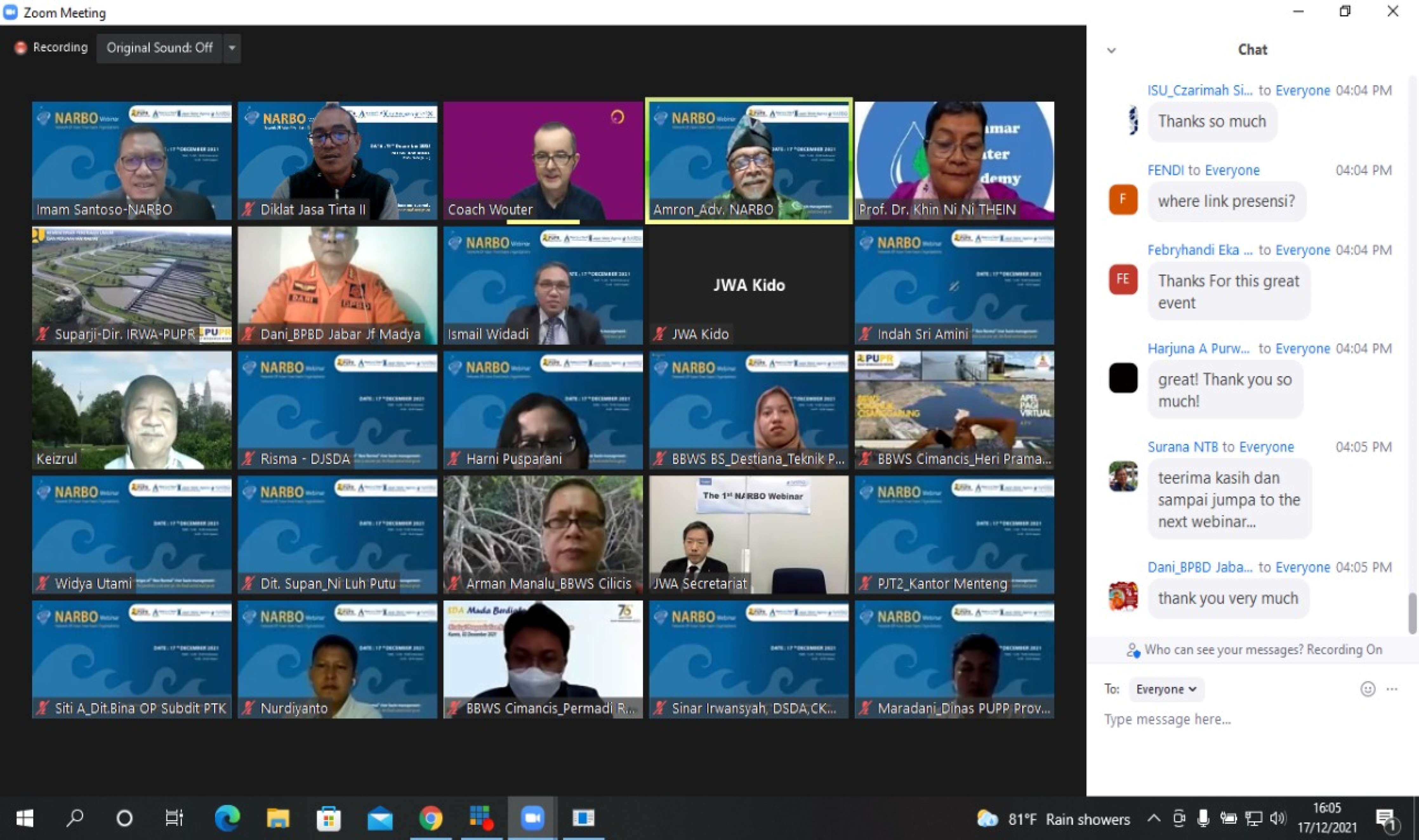 “Melalui webinar ini saya berharap kita dapat memperkuat hubungan kita dalam NARBO untuk mengelola sumber daya air, meningkatkan profesionalisme kita dengan berbagi pengalaman, dan mengadopsi teknologi yang paling baik diimplementasikan di masing-masing negara,”ucap Direktur Utama Jasa Tirta II Imam Santoso.