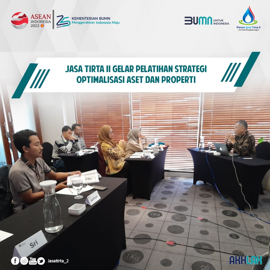 BANDUNG, Senin (05/06). Guna mendorong peningkatan pemanfaatan aset dan properti perusahaan, Jasa Tirta II menggelar pelatihan strategi optimalisasi aset dan properti bagi tim pengelolaan aset. Program peningkatan kompetensi Sumber Daya Manusia (SDM) ini diadakan pada tanggal 5 Juni hingga 6 Juni 2023 di Kimaya Hotel, Bandung Braga.