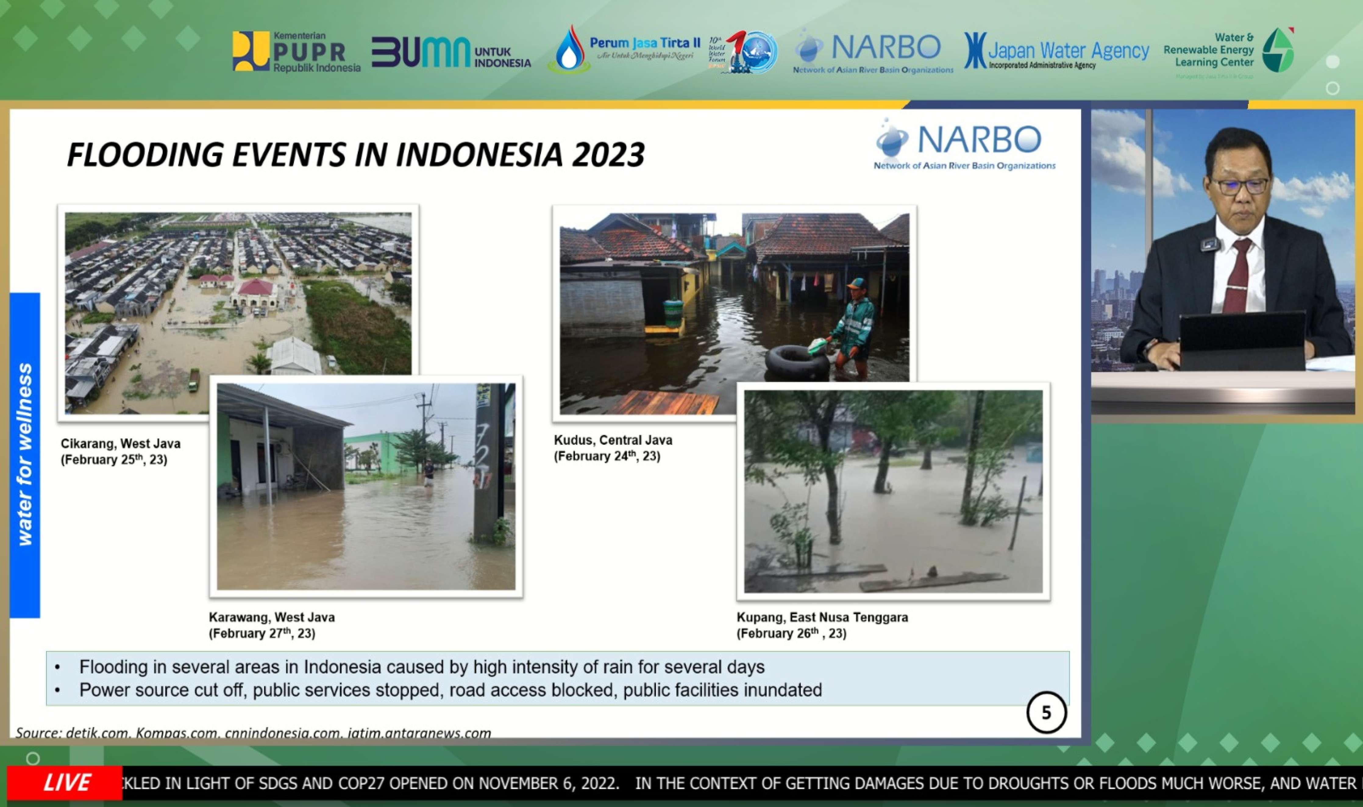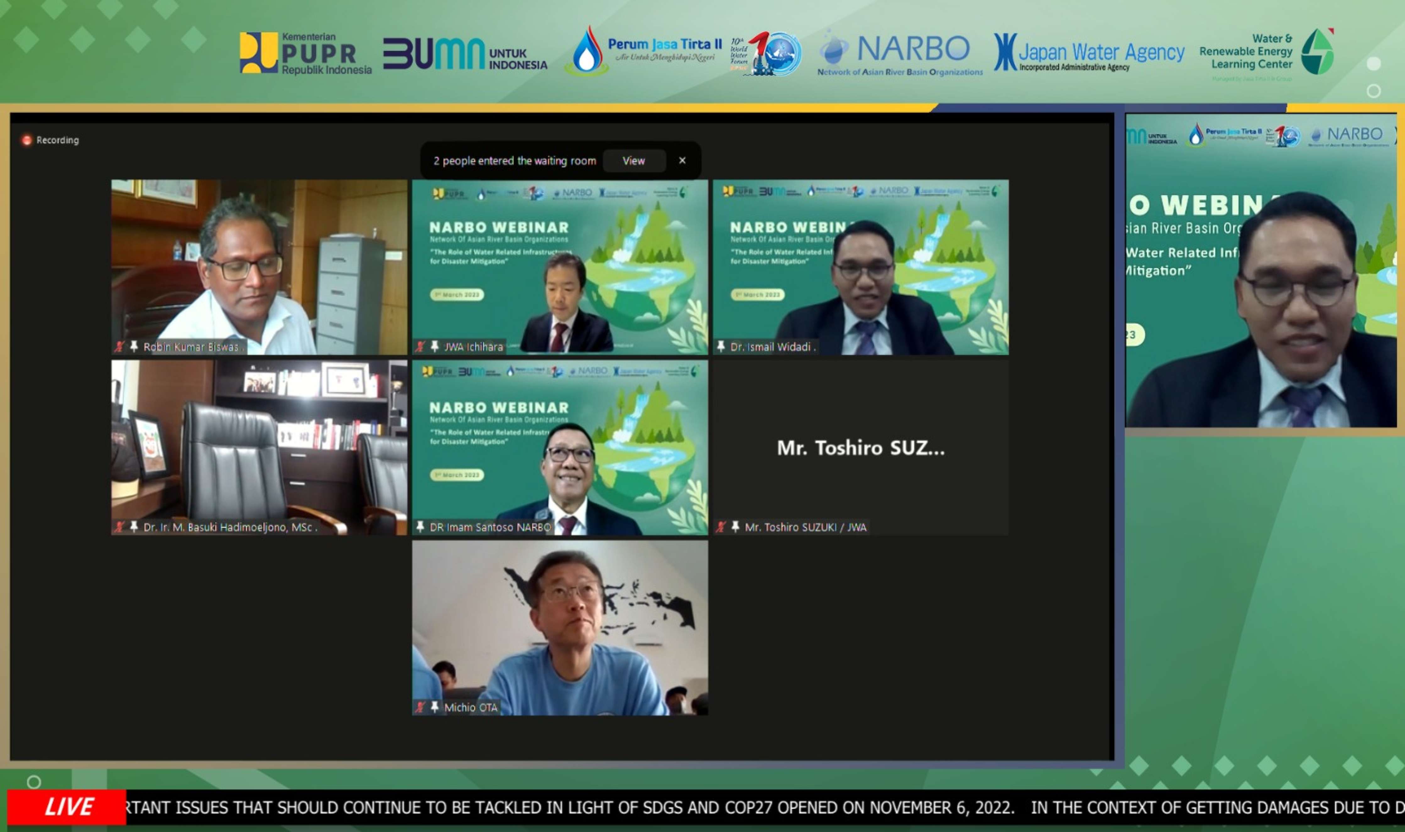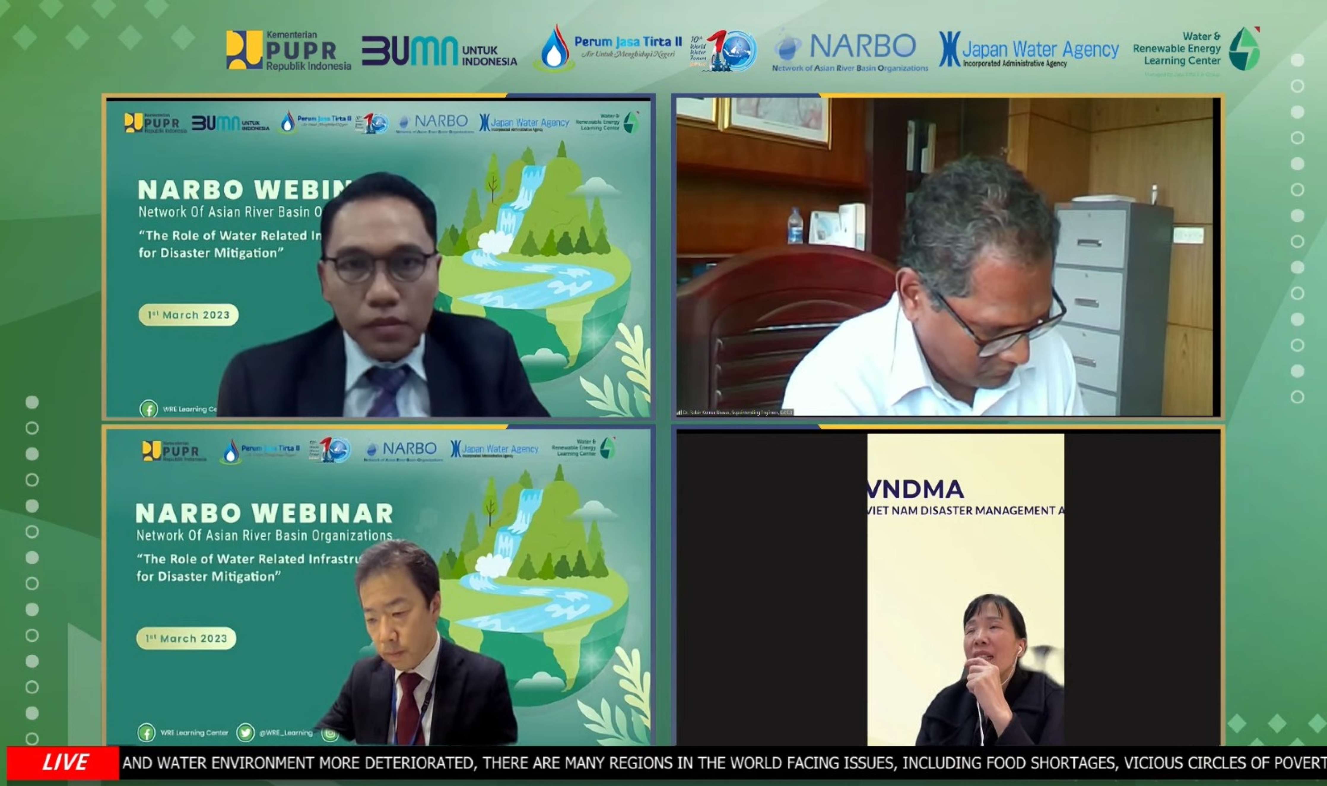 Jasa Tirta II bersama Network of Asian River Basin Organization (NARBO) menggelar webinar internasional membahas terkait “The Role Water Related Infrastructure for Mitigation Disaster” pada hari Rabu, 01 Maret 2023.