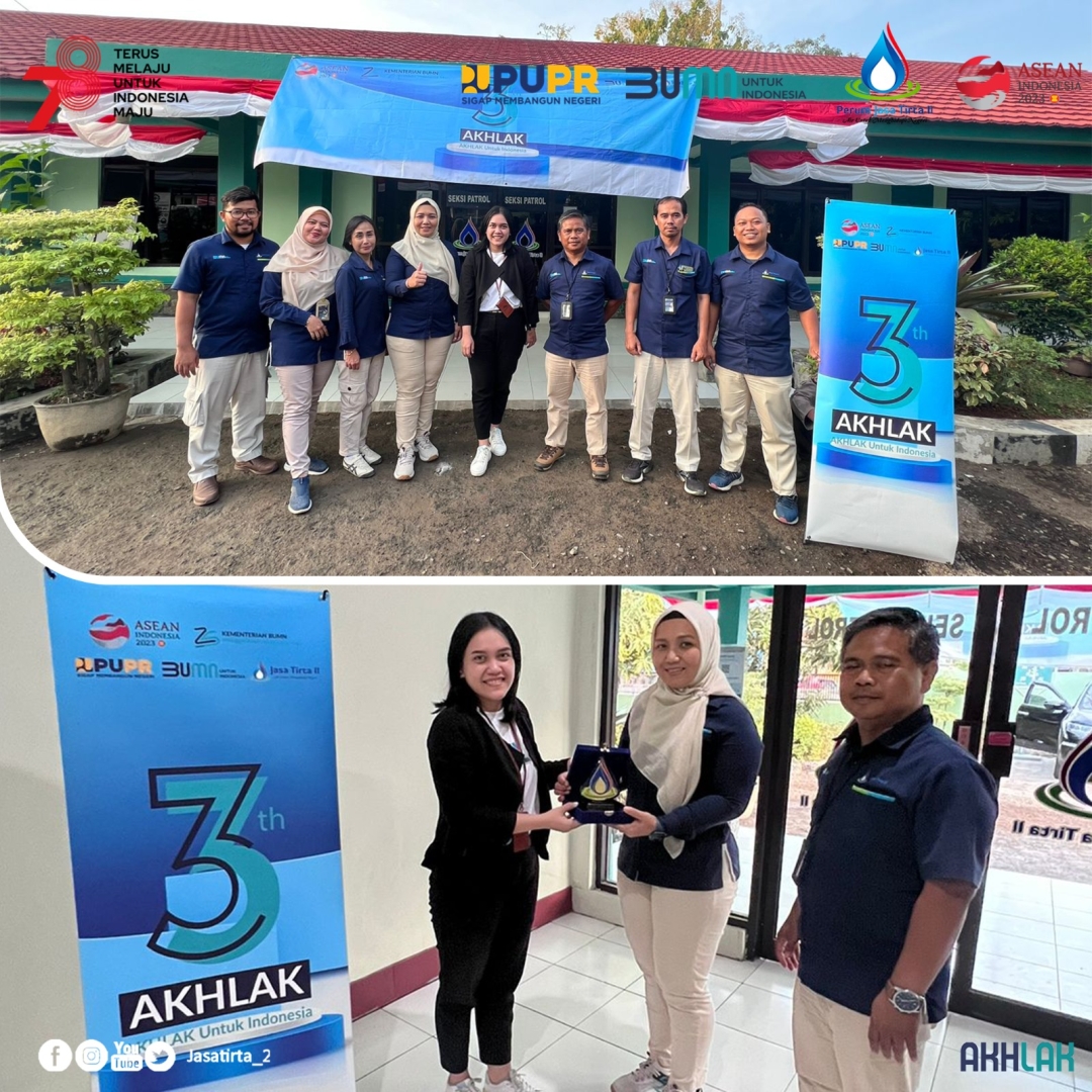 Perum Jasa Tirta II menerima Mistery Guest Ibu Dian Hapsari dari Perum Jasa Tirta I dalam rangka kegiatan Testimoni Implementasi AKHLAK sebagai Salah Satu Rangkaian Kegiatan 3 Tahun AKHLAK BUMN yang dilaksanakan pada tanggal 9 Agustus 2023 di Kantor Seksi Patrol - Indramayu, UW III. Responden PJT II adalah Karyawan Seksi Patrol yaitu Bapak Nana Supriatna dan Bapak Sutrisno.