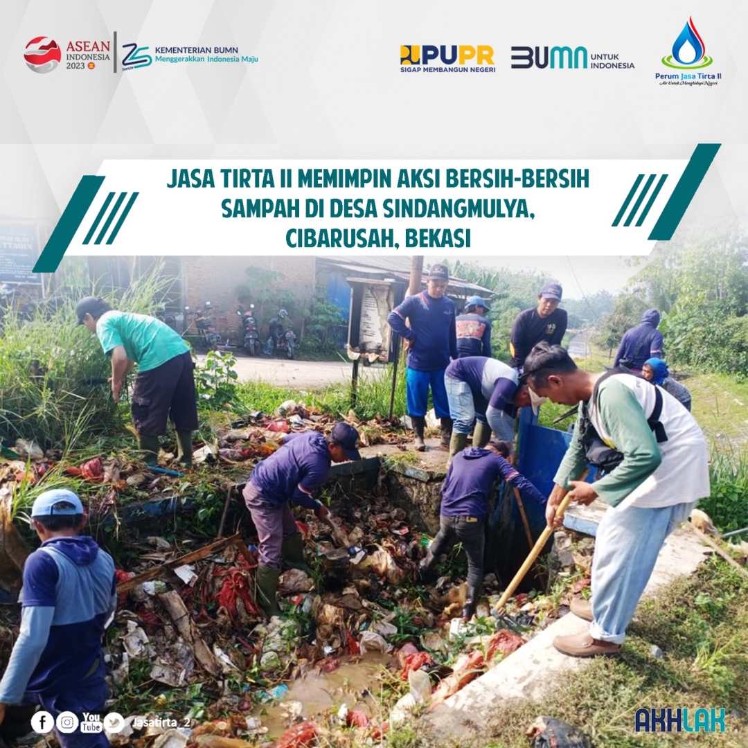Bekasi, 26 Juni 2023 - Jasa Tirta II, dalam upaya memperbaiki dan menjaga kebersihan lingkungan, telah melibatkan Babinsa, BimasPol, dan Petugas Pintu Air SDA dalam aksi penanggulangan pembersihan sampah di Desa Sindangmulya, Cibarusah, Bekasi. Tujuan utama dari kegiatan ini adalah untuk mengajak masyarakat agar lebih sadar dan bertanggung jawab dalam menjaga kebersihan serta menghentikan kebiasaan membuang sampah sembarangan ke sungai atau irigasi.