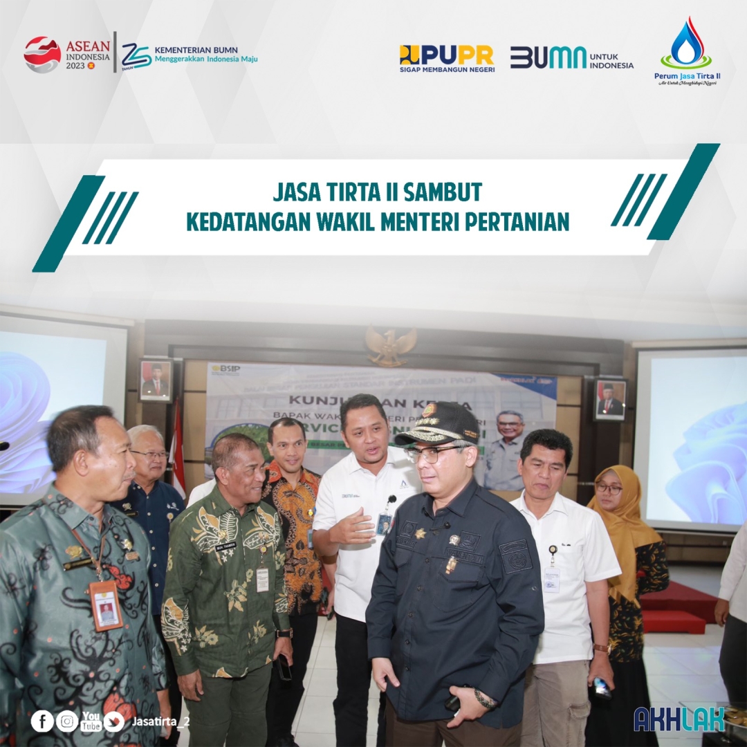 Dalam rangka koordinasi pengelolaan sumber daya air (SDA) di salah satu wilayah kerja Jasa Tirta II, Direktur Operasi dan Pemeliharaan Jasa Tirta II Anton Mardiono didampingi General Manager Unit Usaha Wilayah III menerima kunjungan kerja Wakil Menteri Pertanian Harvick Hasnul Qolbi di Sukamandi - Kabupaten Subang pada tanggal 8 September 2023.