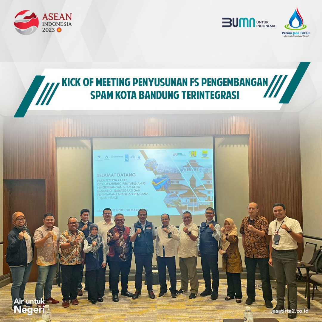 Jasa Tirta II melaksanakan Kick Off Meeting Penyusunan FS Pengembangan SPAM Kota Bandung Terintegrasi pada hari Senin, 20 Mei 2023 bertempat di Mason Pine Hotel, Kota Baru Parahyangan.