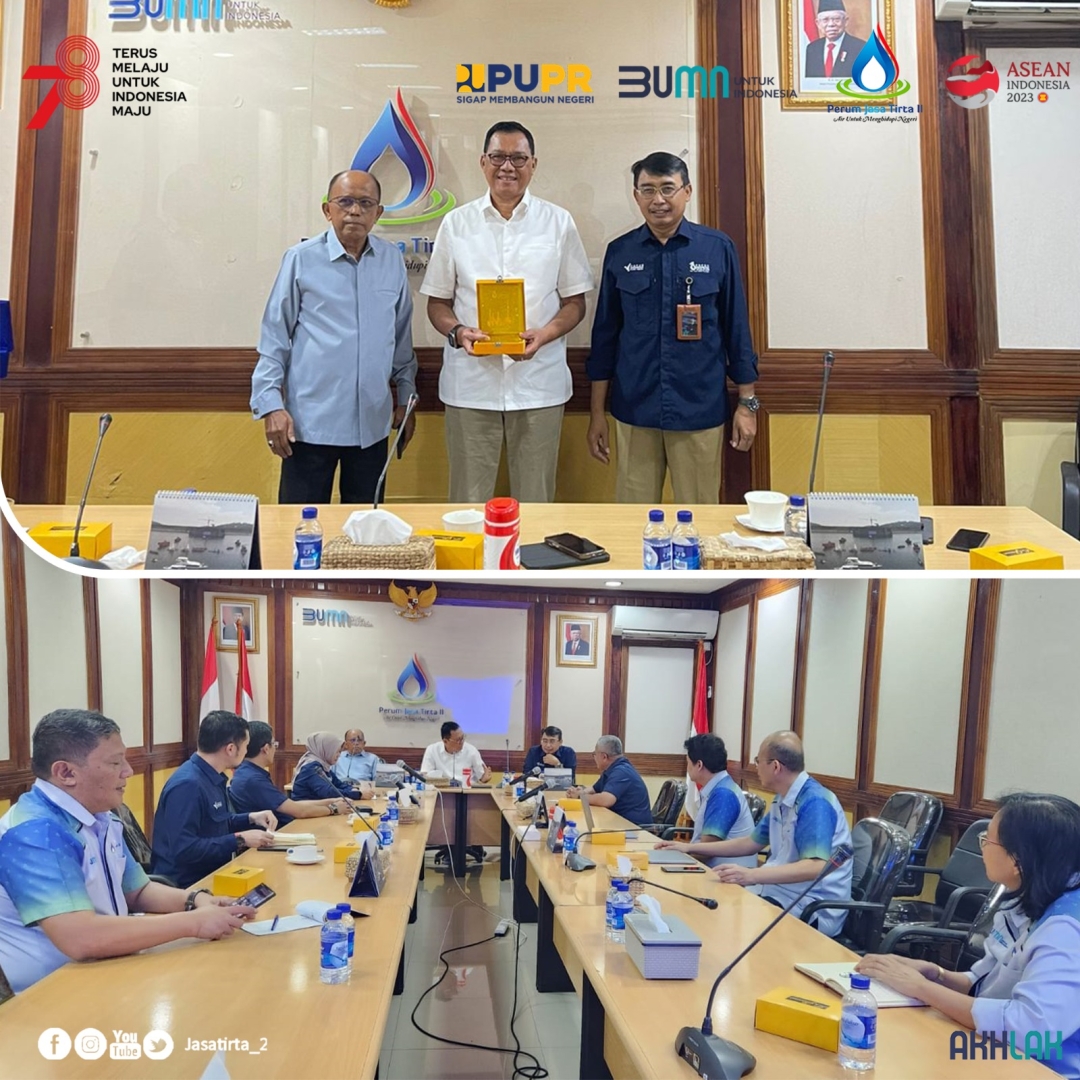 Direktur Utama Jasa Tirta II Imam Santoso didampingi Direktur Operasi dan Pemeliharaan Jasa Tirta II Anton Mardiyono menerima kunjungan kerja Direktur Utama PT. Pupuk Indonesia Utilitas. Tim dari PT. Pupuk Indonesia Utilitas yang terdiri dari Direktur Utama, Direktur Operasi, SEVP Business Support beserta staf PT. Pupuk Indonesia Utilitas diterima di Kantor Penghubung Jasa Tirta II pada tanggal 8 Agustus 2023.