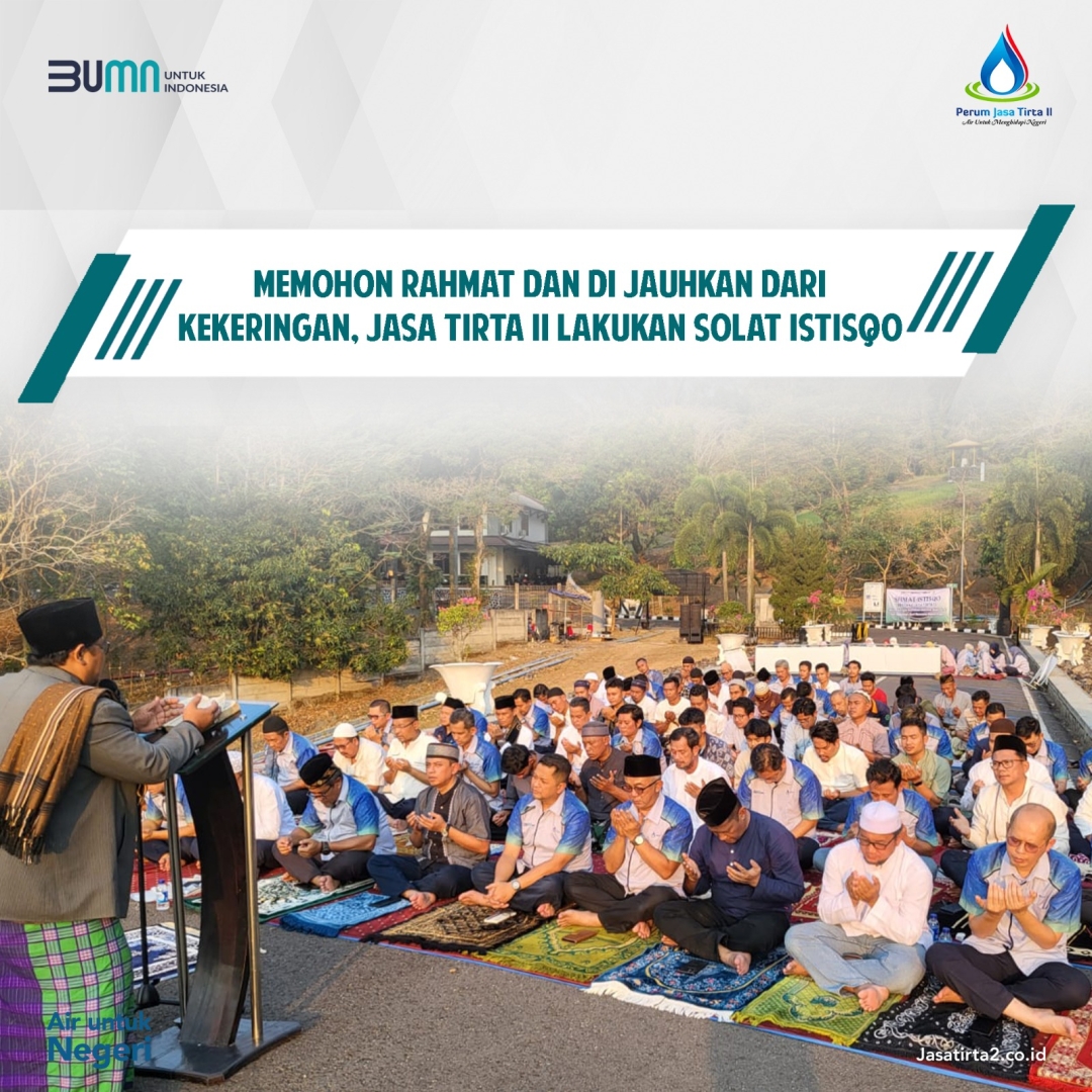 Menghadapi kondisi musim kemarau yang panjang, insan Jasa Tirta II berikhtiar untuk menyelenggarakan kegiatan sholat istisqo pada Selasa, 27 September 2023. Sholat istisqa dilaksanakan secara serentak di seluruh wilayah kerja Jasa Tirta II.