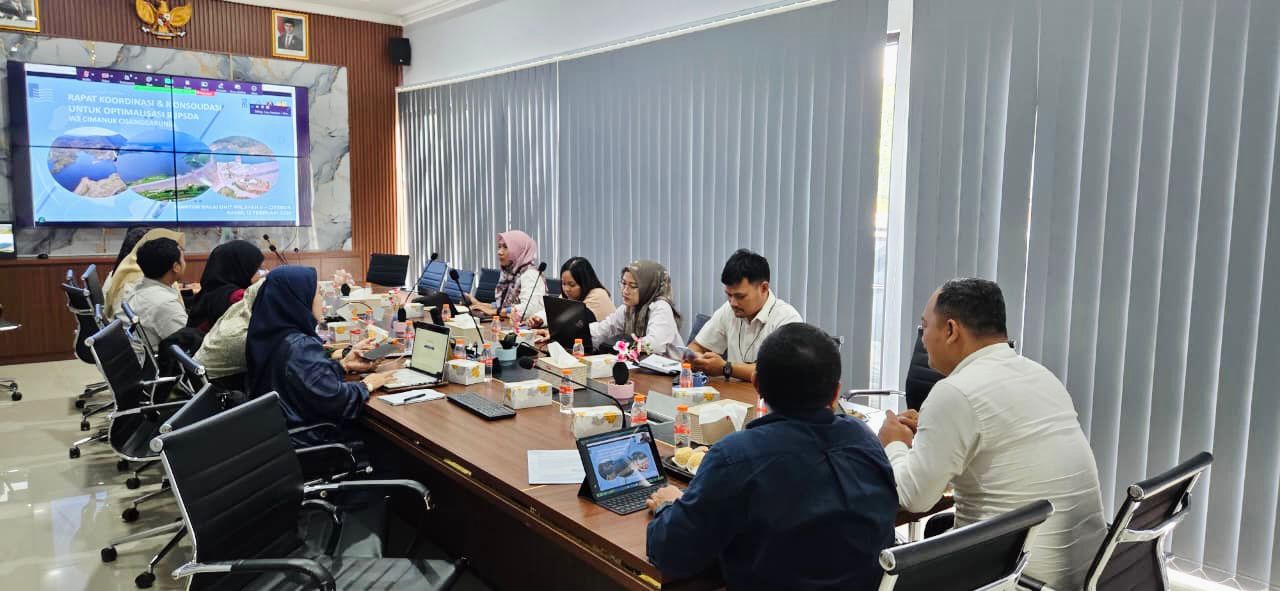Kamis, 12 Februari 2026, Perum Jasa Tirta II Unit Wilayah V melaksanakan Rapat Koordinasi dan Konsolidasi bersama BBWS Cimanuk Cisanggarung dalam rangka optimalisasi penerapan BJPSDA di Wilayah Sungai Cimanuk Cisanggarung. Rapat ini bertujuan untuk melakukan sinkronisasi dan pembaruan data pemanfaat Sumber Daya Air (SDA), khususnya bagi pemanfaat yang telah memiliki izin SIPSDA. Sementara itu, bagi pemanfaat yang belum memiliki izin, didorong untuk segera melengkapi perizinan sesuai ketentuan perundang-undangan yang berlaku. Kegiatan dipimpin langsung oleh General Manager PJT II Unit Wilayah V Cucu Harnanto, didampingi Manager Administrasi & Usaha Linda Wahyuni beserta jajaran, perwakilan Kantor Pusat Divisi Komersial dan Pelayanan Pelanggan, serta dihadiri Ketua Tim Perencanaan Bidang KPI BBWS Cimanuk Cisanggarung Heri Pram beserta jajaran dan Tim Rekomtek. Melalui rapat ini, disepakati komitmen bersama untuk memperkuat koordinasi, sinkronisasi data, serta pemantauan dan pengawasan penggunaan air baku agar penerapan BJPSDA dapat berjalan optimal dan berkelanjutan.