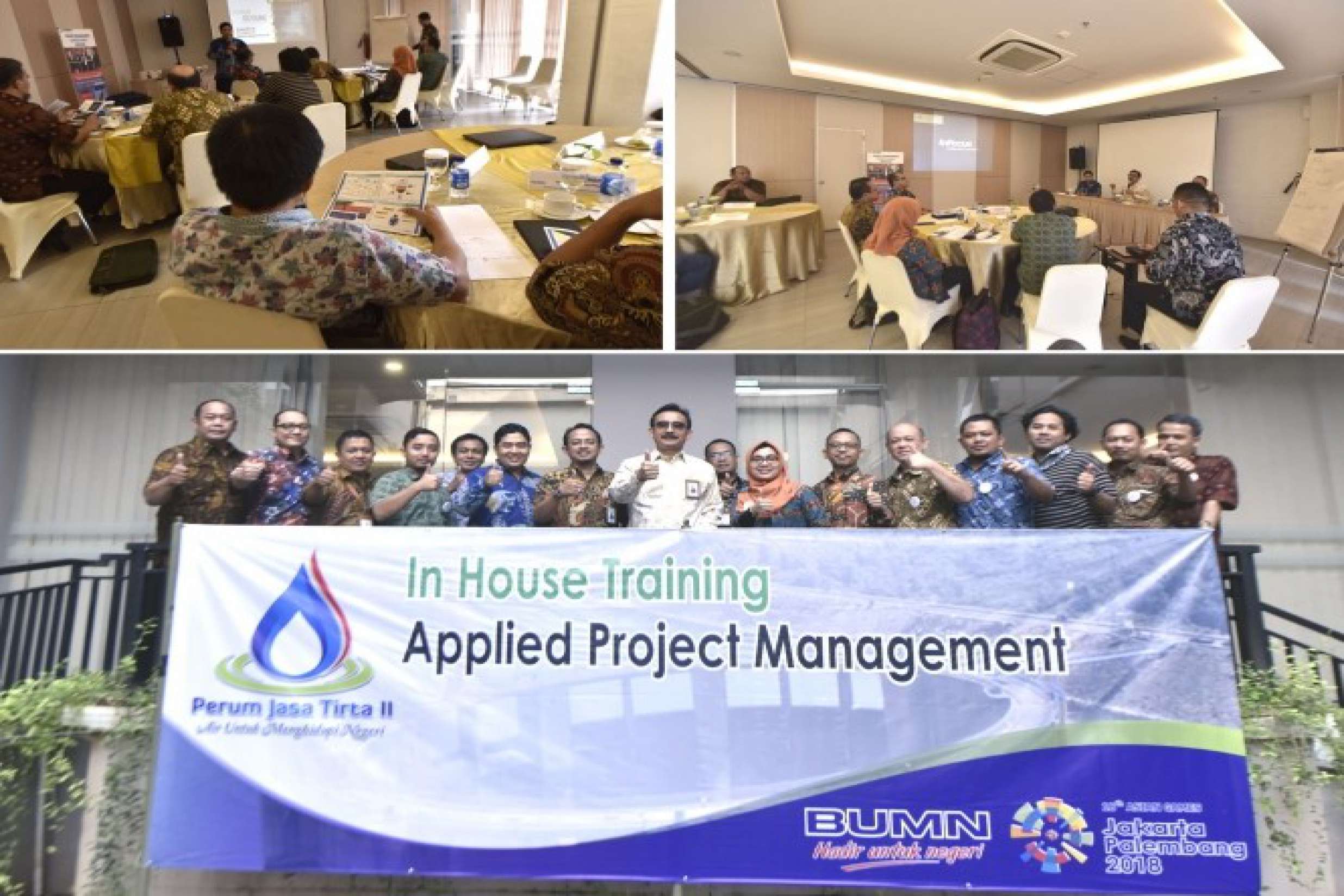 Bekasi (23/07/2018). Divisi SDM Perum Jasa Tirta II menyelenggarakan In House Training yang bertema “Applied Project Management” pada tanggal 23 & 24 Juli 2018 yang diselenggarakan di Hotel Santika Mega Bekasi. Pelatihan ini diawali dengan kunjungan lapangan ke PT. Aetra Air Jakarta pada yanggal 20 Juli 2018. Tujuan diselenggarakannya pelatihan ini ialah untuk dapat memahami lebih lanjut mengenai pengelolaan proyek. Pelatihan ini dibuka langsung oleh Bapak Sumyana Sukandar selaku Diretkur I Perum Jasa Tirta II, dalam pembukaannya beliau mengharapkan dengan diadakannya pelatihan ini PJT II dapat mengembangkan proyek dan memahami pengelolaan/management proyek yang baik dan benar.