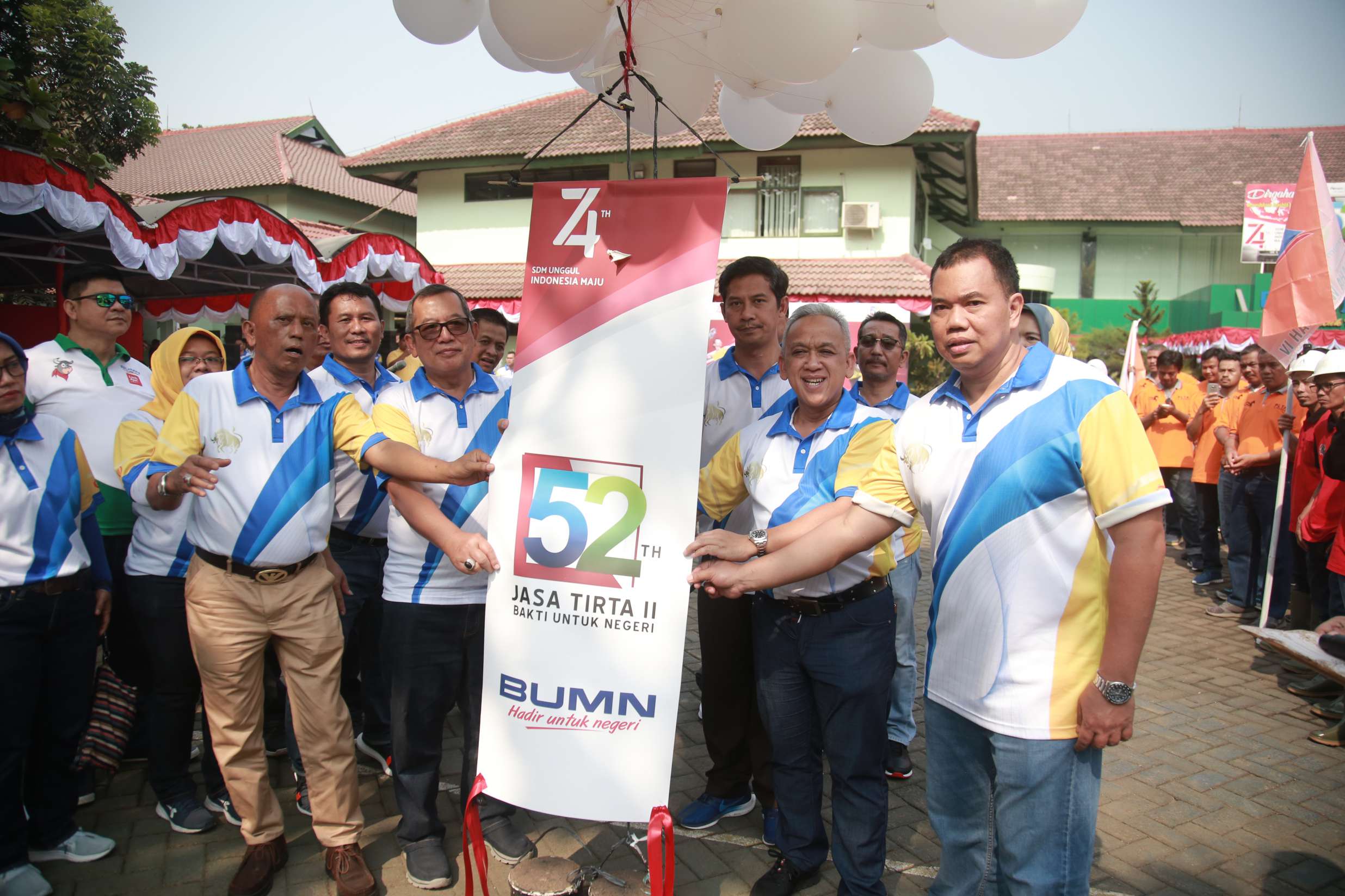 JATILUHUR – Bertempat di Kantor Pusat Jasa Tirta II, seluruh insan Jasa Tirta II melaksanakan upacara pembukaan Peringatan HUT ke-52 Jasa Tirta II pada tanggal 15 Agustus 2019. Dipimpin oleh Direktur Utama Jasa Tirta II U. Saefudin Noer, upacara pembukaan berlangsung khidmat dan meriah ditandai dengan pelepasan balon udara.