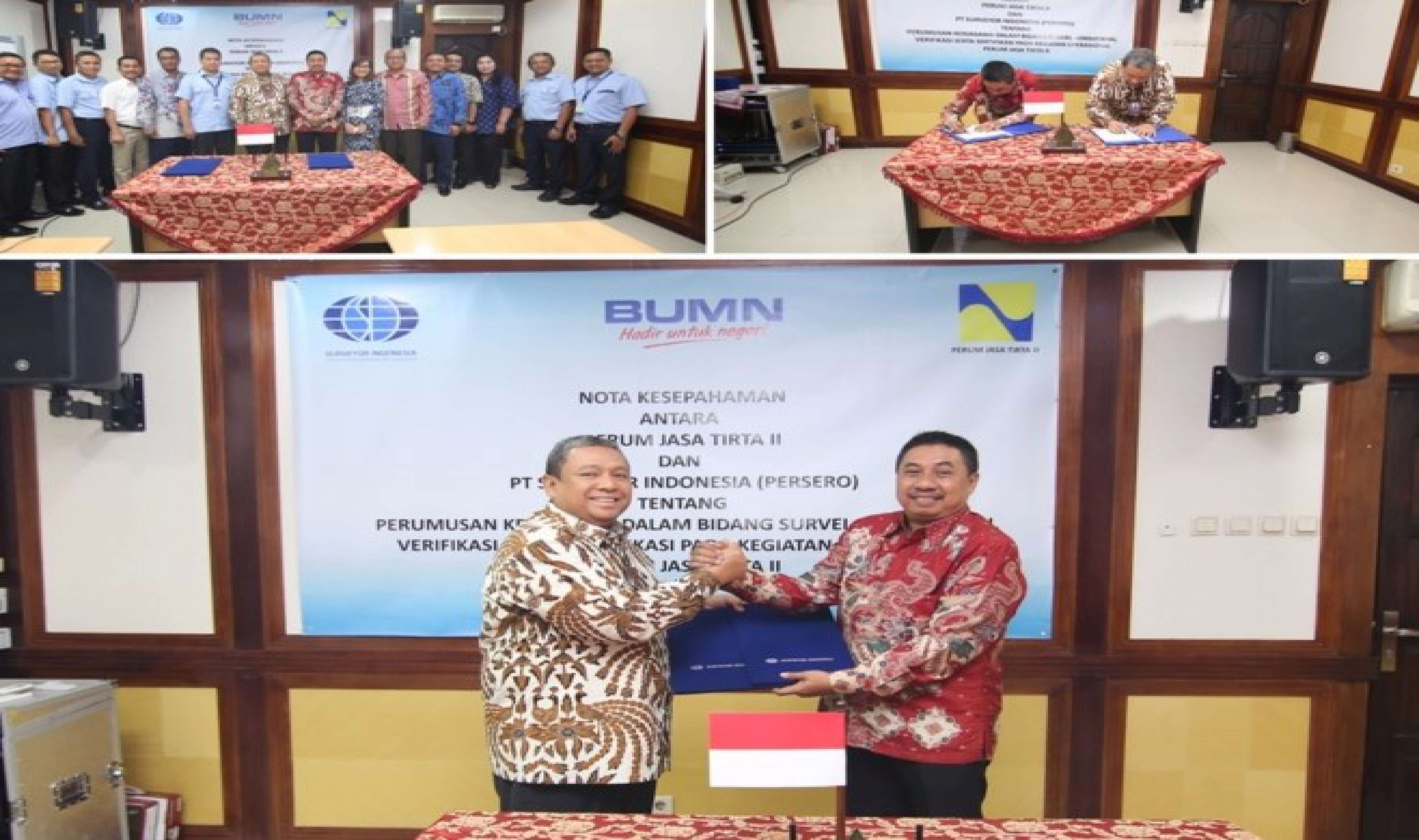 Penandatanganan dilaksanakan oleh Direktur Utama Perum Jasa Tirta II, Djoko Saputro dan Direktur Utama PT. Surveyor Indonesia, M. Arief Zainuddin.