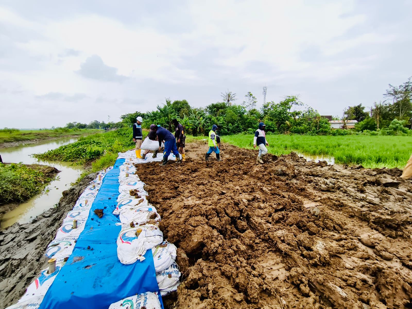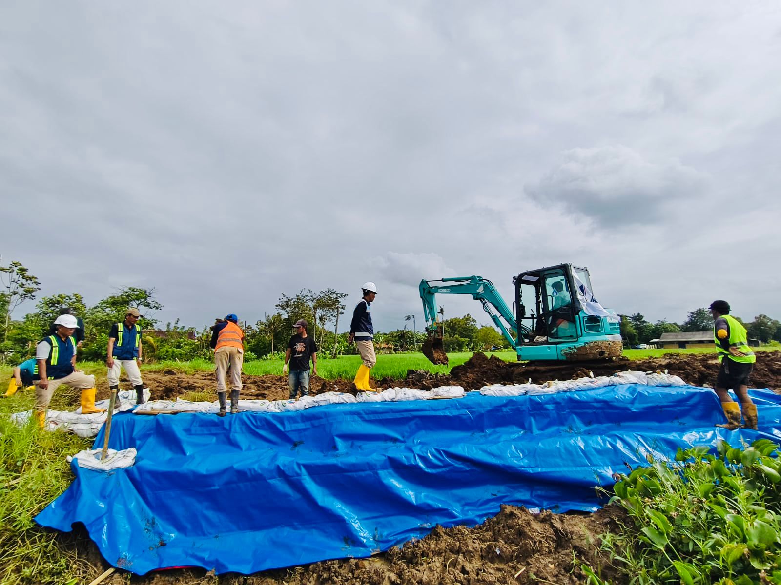 Pada tanggal 24–28 Januari 2026, Perum Jasa Tirta II Unit Wilayah I melalui Seksi Lemahabang melaksanakan perbaikan tanggul pada Saluran Sekunder Kedunggede ruas B.Kg 5a–5 Tanggul Kanan yang berlokasi di Desa Cipayung, Kecamatan Cikarang Timur, Kabupaten Bekasi. Curah hujan yang tinggi menyebabkan terjadinya jebolan tanggul sepanjang ±8 meter, sehingga diperlukan penanganan cepat guna menjaga fungsi dan keandalan saluran irigasi. Saluran ini memiliki area layanan irigasi seluas ±8.148 Ha. Penanganan dilakukan menggunakan mini excavator milik PJT II, disertai pemasangan karung plastik berisi tanah, cerucuk bambu, bronjong yang diisi karung tanah, serta pemasangan terpal sebagai penguat tanggul sementara. Langkah ini merupakan bentuk komitmen Perum Jasa Tirta II dalam menjaga dan merawat prasarana sumber daya air demi mendukung ketahanan pangan serta pelayanan air yang berkelanjutan bagi masyarakat.