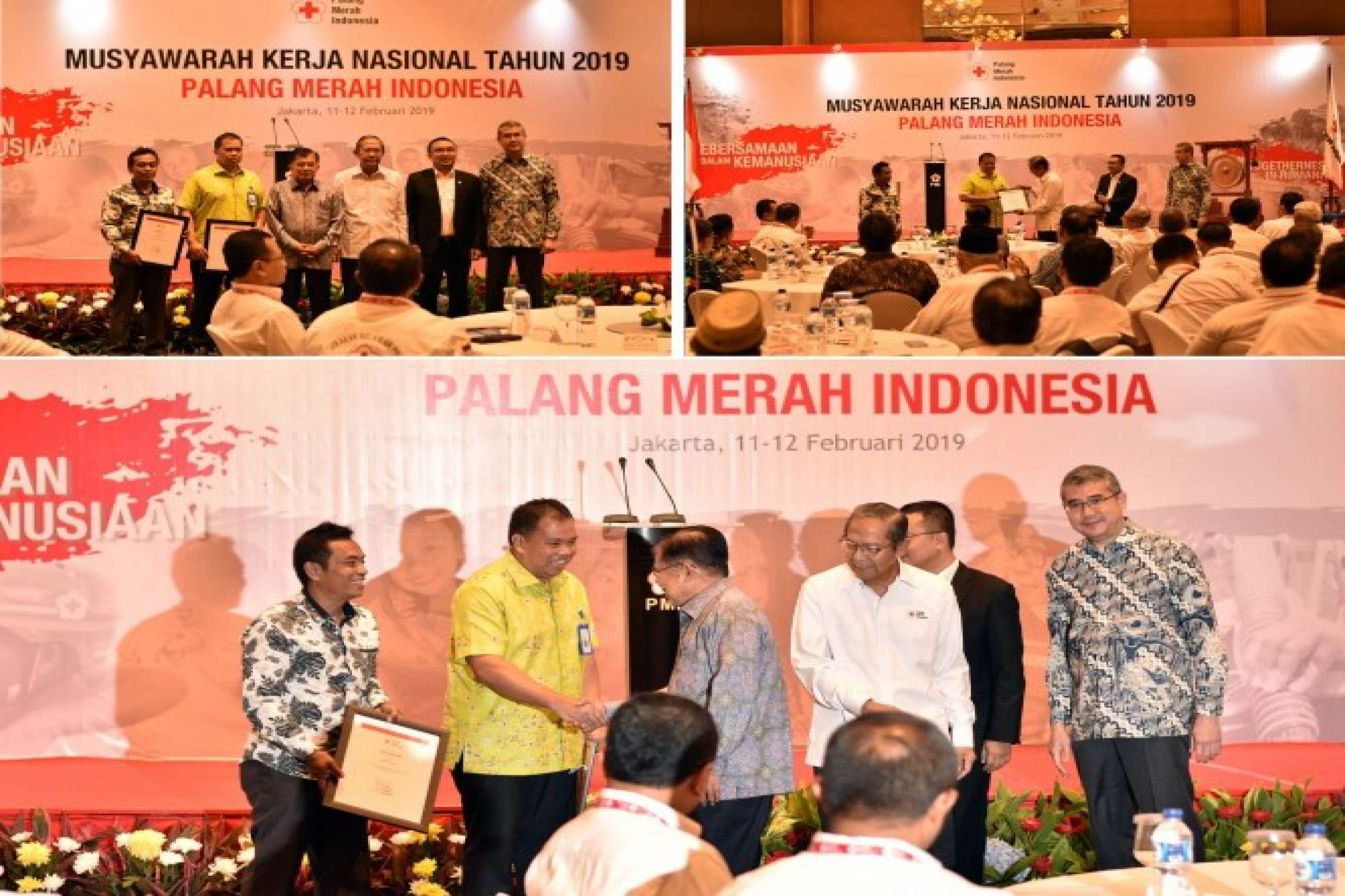 JAKARTA - Perum Jasa Tirta II mendapatkan penghargaan dari Palang Merah Indonesia atas dukungannya dalam kegiatan Temu Karya Relawan Tingkat Nasional (TKRN) VI 2018. Penghargaan tersebut diberikan langsung oleh Wakil Presiden Republik Indonesia, Jusuf Kalla kepada Plt. Direktur Utama Perum jasa Tirta II, Haris Zulkarnain dalam acara Musyawarah Kerja Nasional PMI di Arya Duta Hotel, Jakarta pada Senin, 11 Februari 2019.