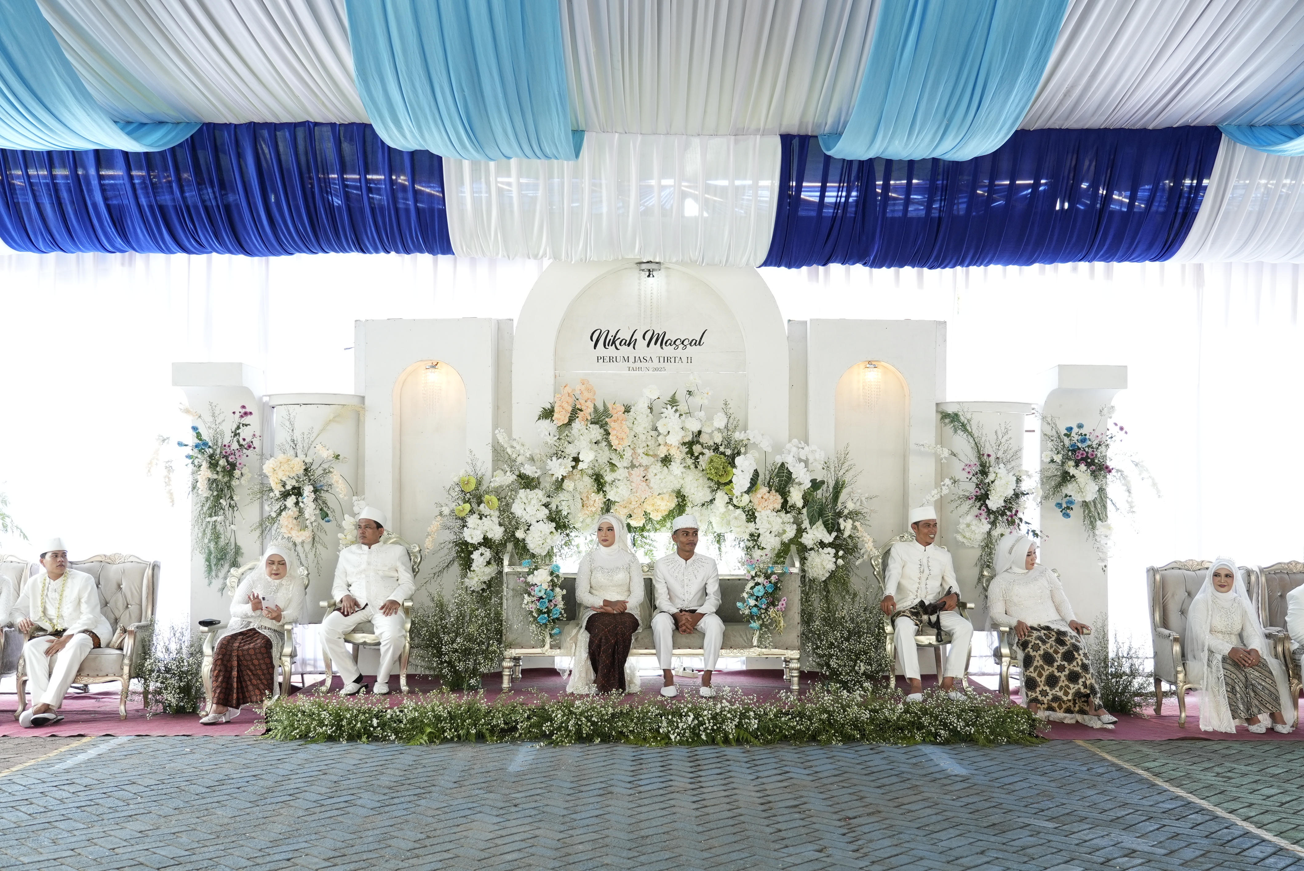 Rabu, 17 Desember 2025, dalam rangka pelaksanaan Pilar Sosial Program Tanggung Jawab Sosial dan Lingkungan (TJSL) Tahun 2025, PJT II melaksanakan Program Nikah Massal sebagai bentuk kepedulian sosial kepada masyarakat. Program yang dilaksanakan di Masjid Assalam, Kantor Pusat PJT II dengan di ikuti sebanyak 14 pasangan ini, terselenggarakan melalui kolaborasi dengan Kantor Urusan Agama (KUA) Jatiluhur, Pemerintah Daerah, serta mitra terkait lainnya. Program Nikah Massal merupakan bagian dari komitmen TJSL Perum Jasa Tirta II untuk membantu masyarakat kurang mampu dalam memperoleh legalitas pernikahan yang sah, aman, dan tanpa biaya, sekaligus mendukung peningkatan kesejahteraan sosial serta tertib administrasi kependudukan. Melalui program ini, Perum Jasa Tirta II berharap dapat memberikan manfaat nyata bagi masyarakat serta memperkuat peran BUMN dalam mendukung pembangunan sosial yang inklusif dan berkelanjungan.