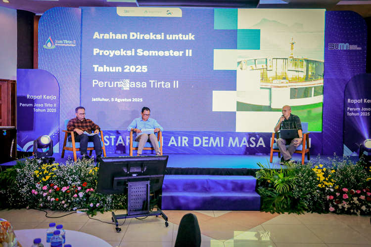 Selasa, 5 Agustus 2025, bertempat di Graha Vidya Jatiluhur, Perum Jasa Tirta II sukses melaksanakan kegiatan Rapat Kerja Tahun 2025 dengan tema penguatan proyeksi, strategi, dan evaluasi kinerja semester I.
