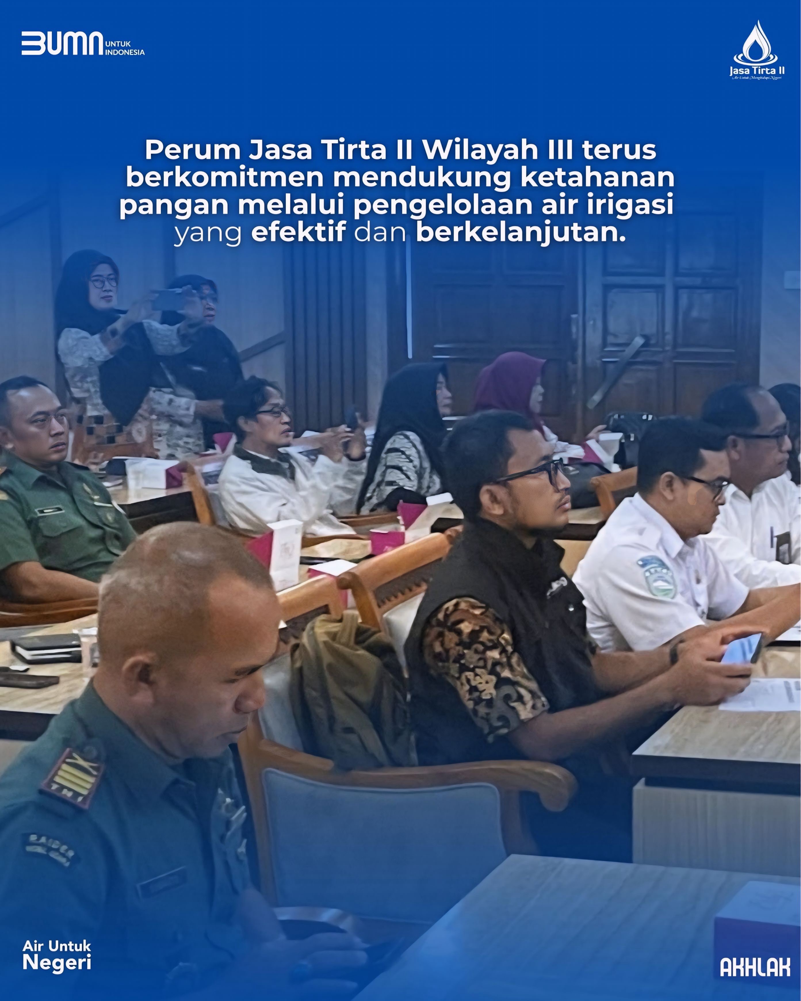 Perum Jasa Tirta II Wilayah III terus berkomitmen mendukung ketahanan pangan melalui pengelolaan air irigasi yang efektif dan berkelanjutan.