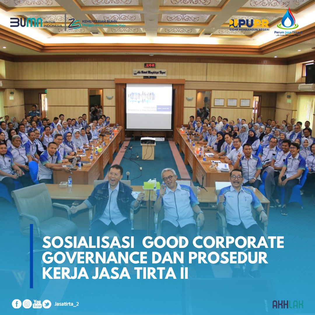 Jasa Tirta II menyelenggarakan Sosialisasi Pedoman Tata Kelola Perusahaan yang Baik (Good Corporate Governance) dan Prosedur Kerja Perusahaan pada Selasa, (5/12/2023) di Grha Citarum, Purwakarta. Kegiatan ini dilakukan sehubungan dengan telah ditetapkannya Pedoman Tata Kelola Perusahaan yang Baik dan Prosedur Nomor 47 tentang Job Safety Analysis (JSA) dan Ijin Kerja K3.