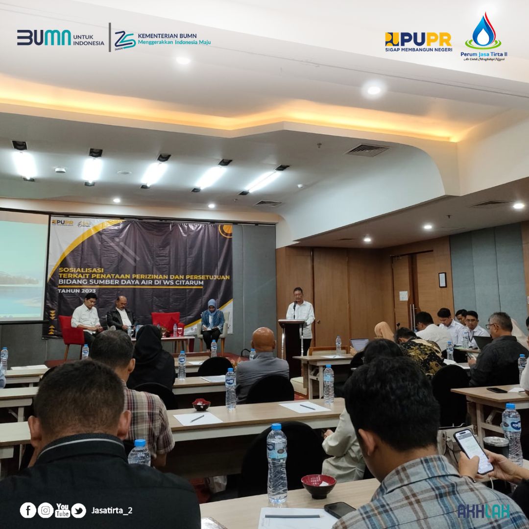 Jasa Tirta II diwakili Kadiv Komersil dan Pelayanan Pelanggan, Esthi Pambangun dan tim menghadiri sosialisasi terkait Penataan Perizinan dan Persetujuan Bidang Sumber Daya Air di Wilayah Sungai Citarum pada Senin, (4/12/2023) di Bandung, Jawa Barat.