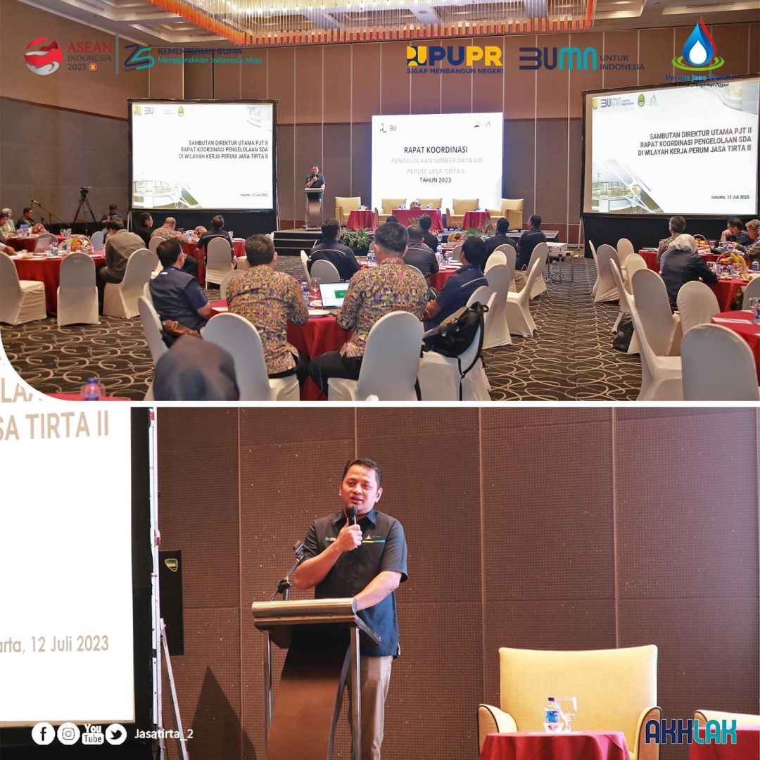 Jasa Tirta II menggelar Rapat Koordinasi Pengelolaan Sumber Daya Air Tahun 2023 pada Rabu, 12 Juli 2023 bertempat di Swiss-BelHotel Mangga Besar, Jakarta.