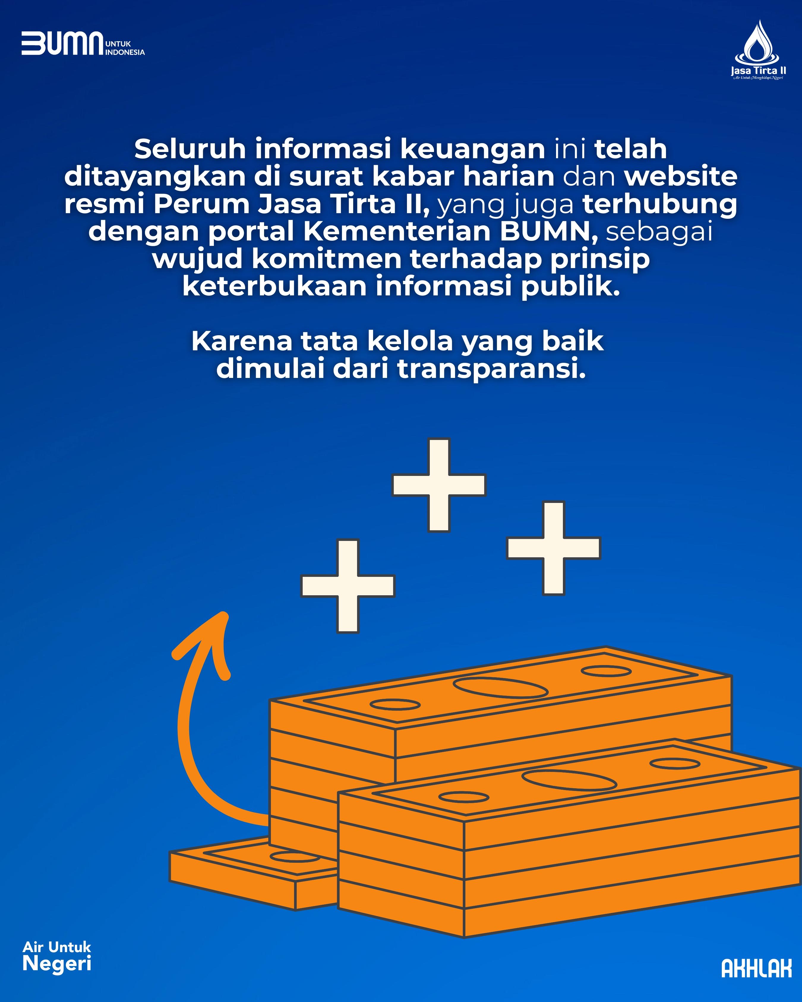Seluruh informasi keuangan ini telah kami tayangkan di surat kabar harian dan website resmi Perum Jasa Tirta II, yang juga terhubung dengan portal Kementerian BUMN, sebagai wujud komitmen terhadap prinsip keterbukaan informasi publik.