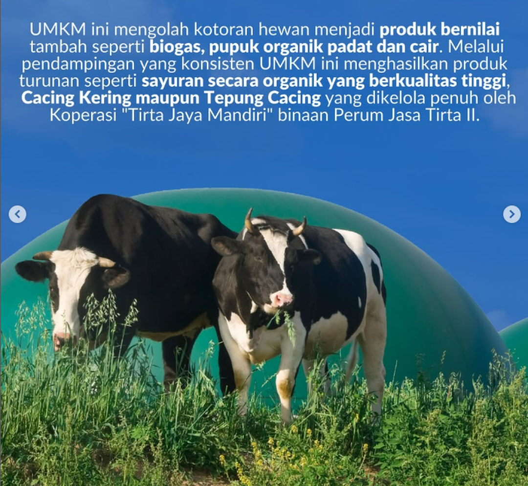 Keberhasilan program pemberdayaan masyarakat oleh Jasa Tirta II kian nyata. Salah satu UMKM binaannya, yang mengolah kotoran hewan menjadi biogas, pupuk organik, dan kompos, berhasil membeli mobil operasional baru untuk mendistribusikan sayuran organik berkualitas tinggi.