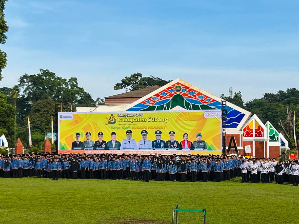 Senin, 6 April 2026, General Manager Wilayah III Perum Jasa Tirta II menghadiri Upacara Puncak Peringatan Milangkala Kabupaten Subang yang diselenggarakan oleh Bupati Subang, bertempat di Lapangan Alun-alun Subang. Kabupaten Subang memperingati hari jadinya yang ke-78 pada 5 April 2026 dengan mengusung tema “Karya Nyata Subang Ngabret”, yang mencerminkan semangat kolaborasi, inovasi, serta percepatan pembangunan demi kesejahteraan masyarakat. Perum Jasa Tirta II Unit Wilayah III berkomitmen untuk terus mendukung sinergi dan kolaborasi dalam mendorong pembangunan daerah serta peningkatan kesejahteraan masyarakat